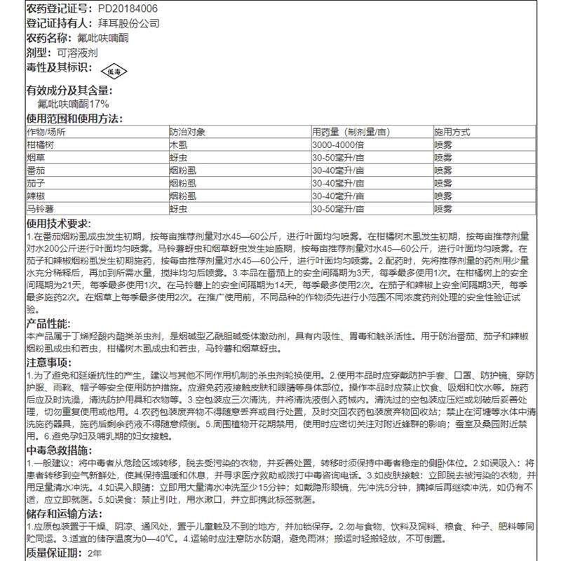 📚 拜耳极显氟吡呋喃酮亩旺特白粉烟粉虱柑橘红蜘蛛介壳虫杀螨杀虫剂