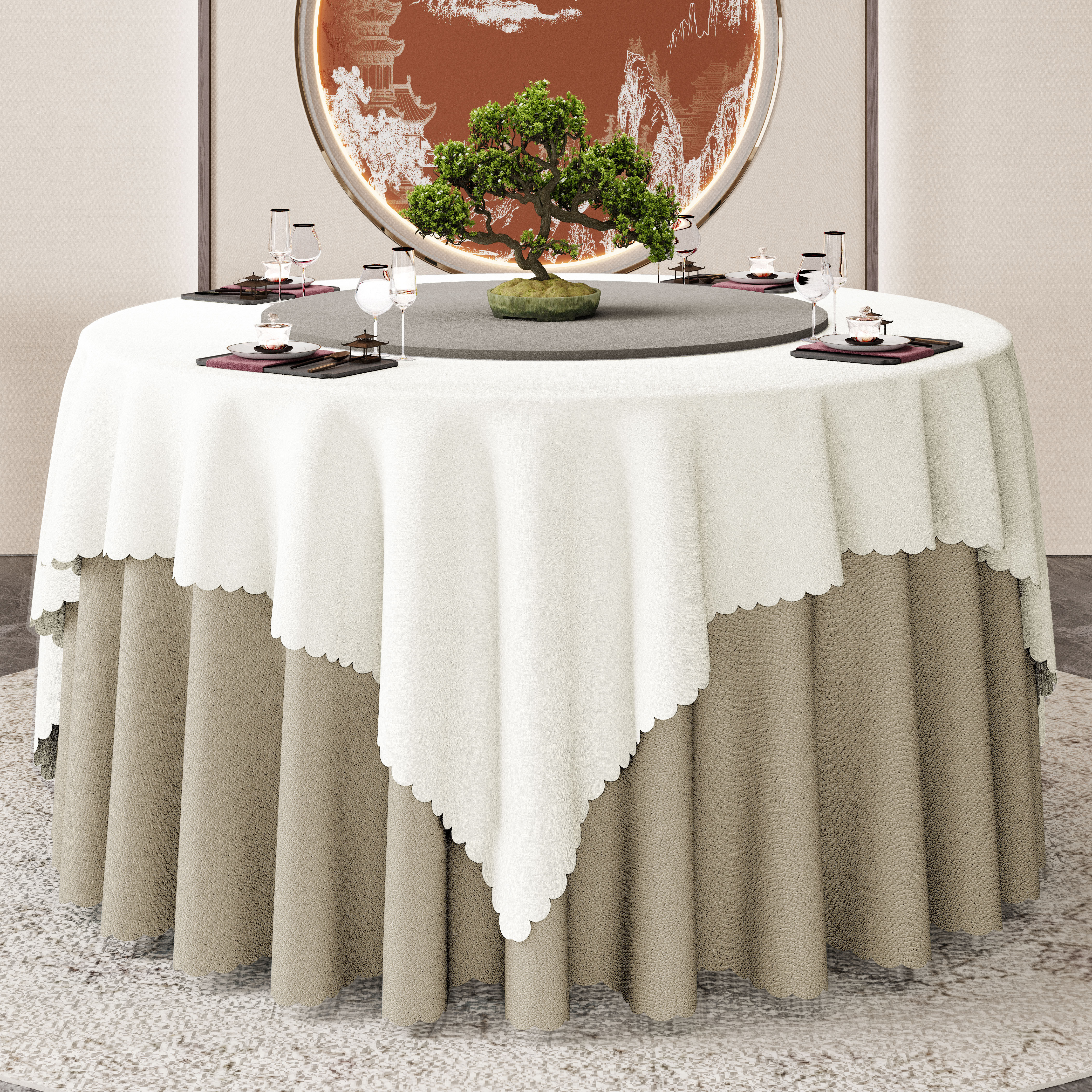 📚 PU防水防油酒店圆桌布双层餐桌布圆台布加厚饭店会所电动桌布圆形