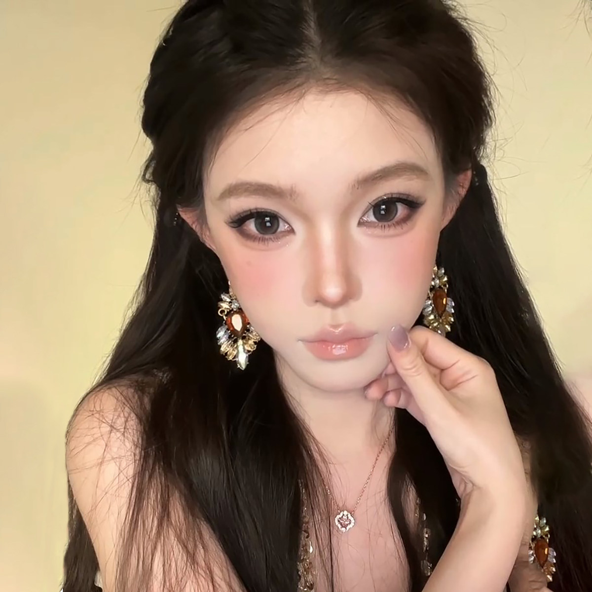 📚 周幼琳同款富家千金大耳环女无耳洞耳夹古早锆石耳钉长款夸张耳饰