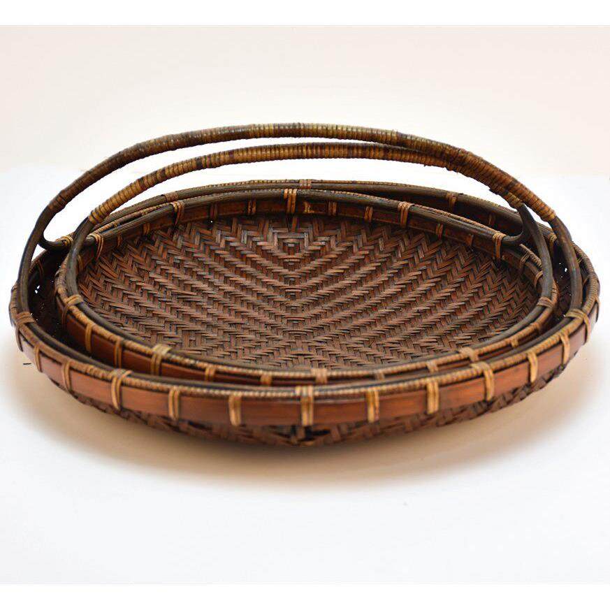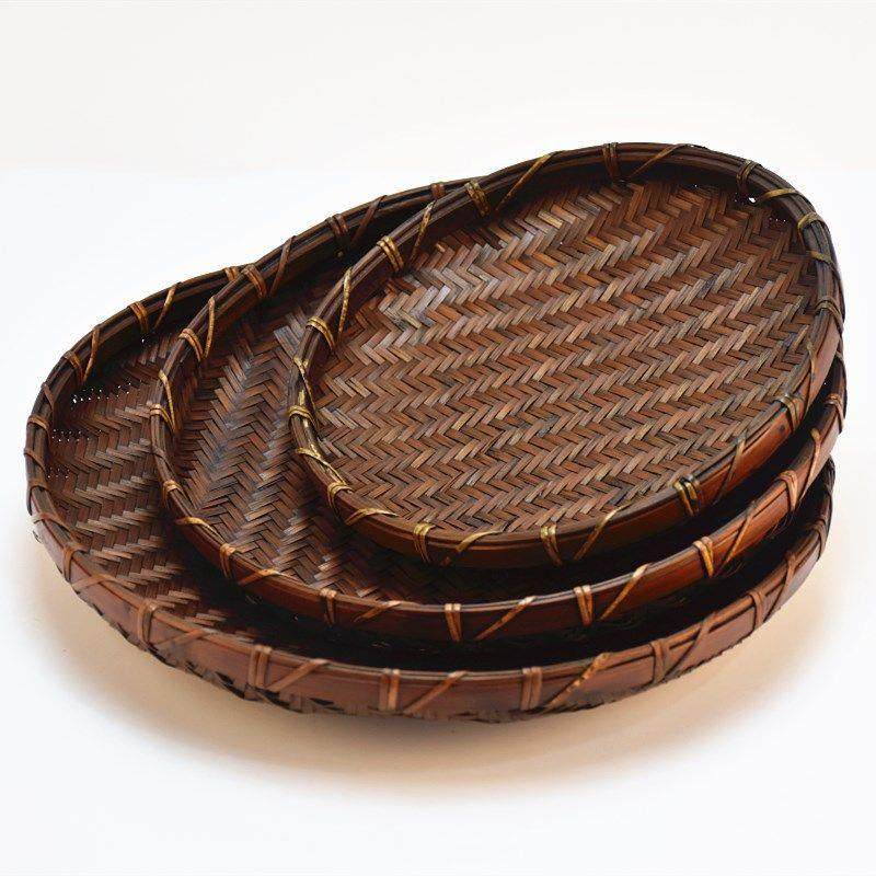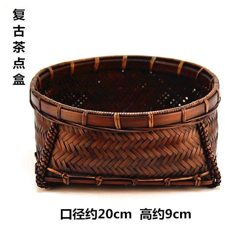 📚 手工竹编果篮茶点盘创意家用收纳水果篮覆古做旧点心篮竹藤编织品