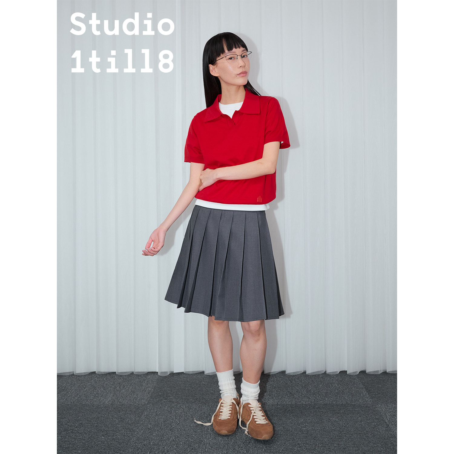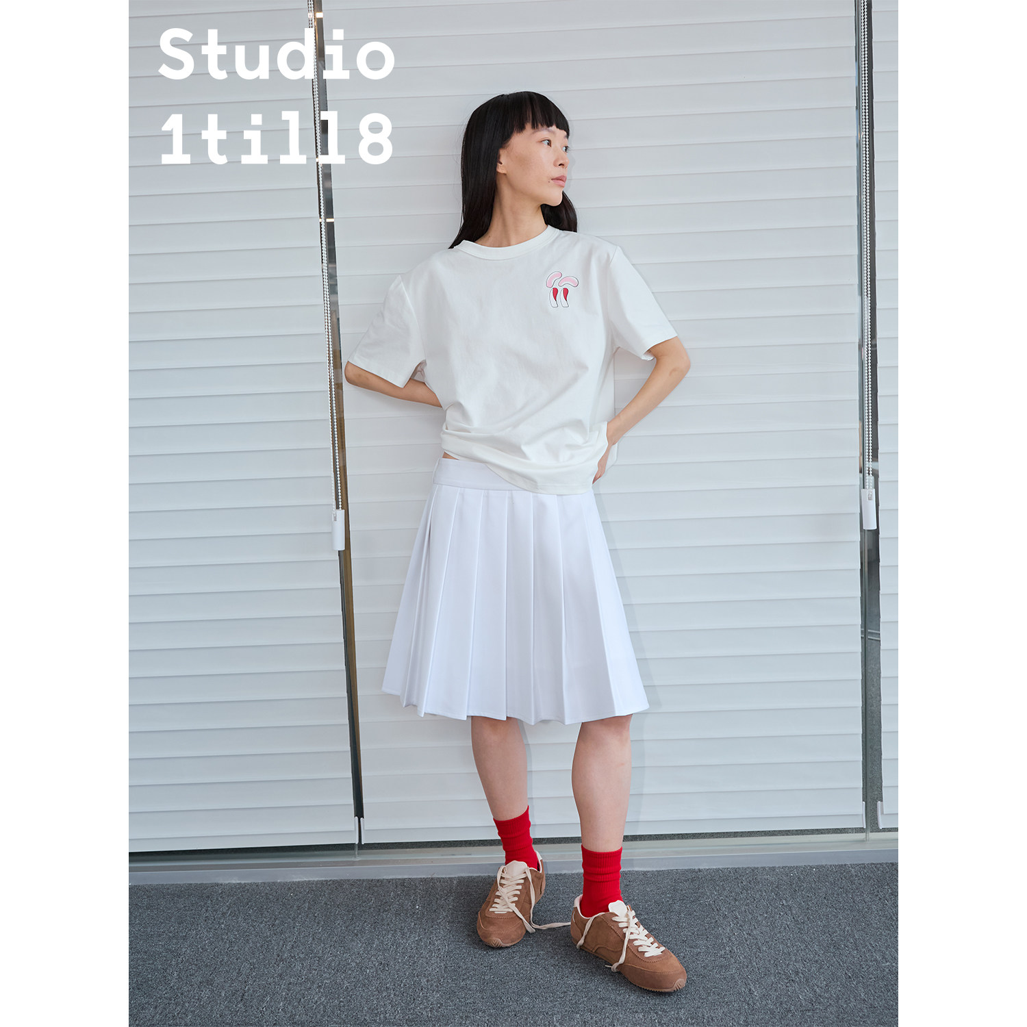 📚 Studio1till8 蓝色/白色/灰色 学院风A字型半身裙百搭中长百褶裙