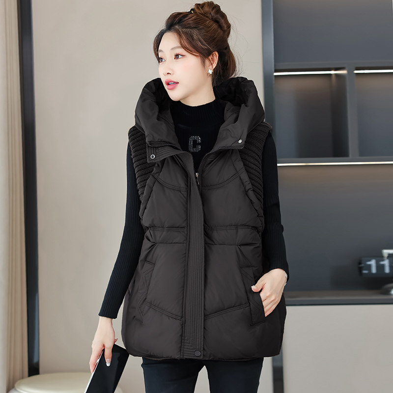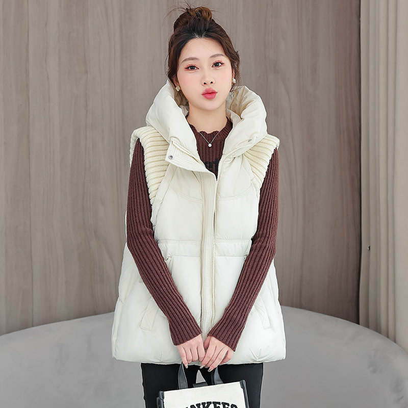 📚 针织连帽无袖轻便羽绒棉服外套女2025新款时尚拼接背心坎肩马甲女