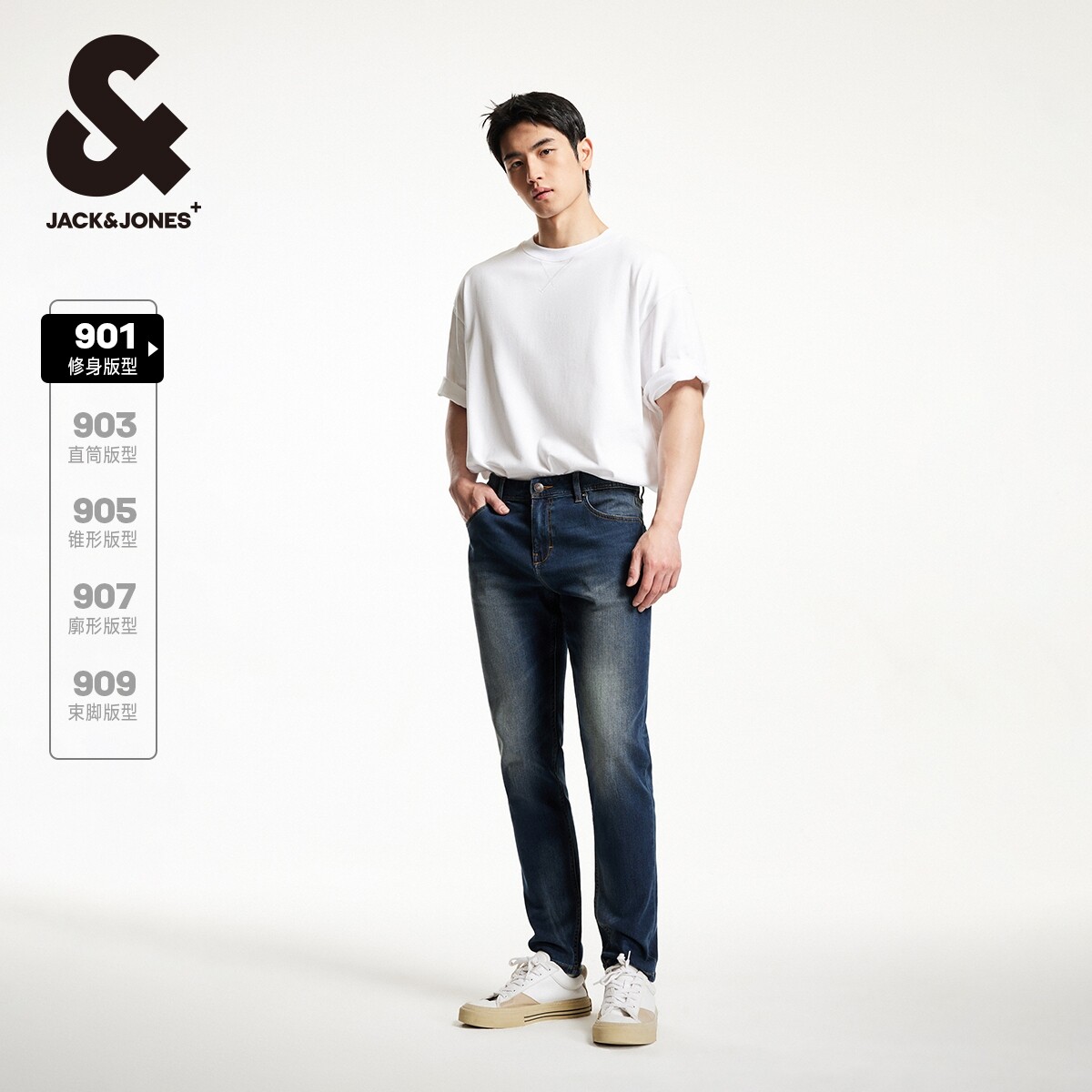 📚 901杰克琼斯男装秋季修身复古深蓝猫须水洗牛仔裤男款男士长裤子