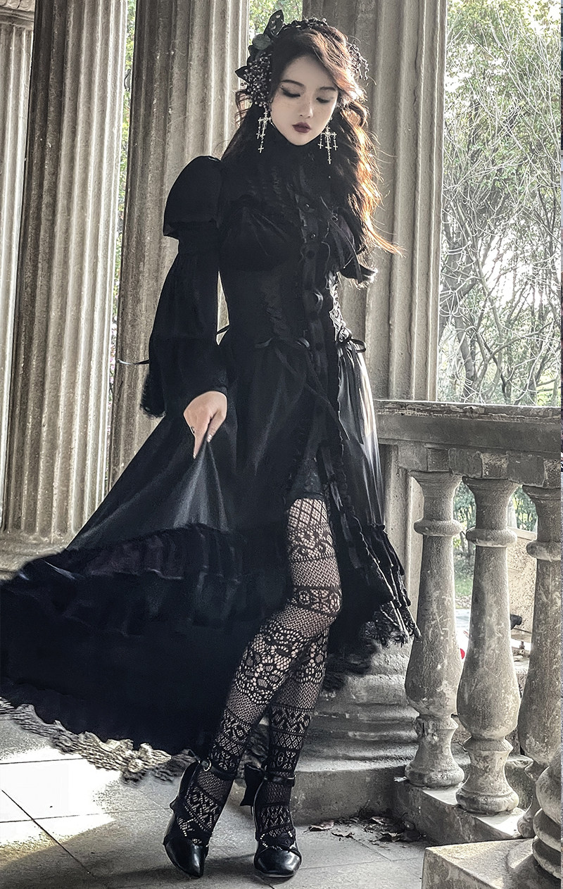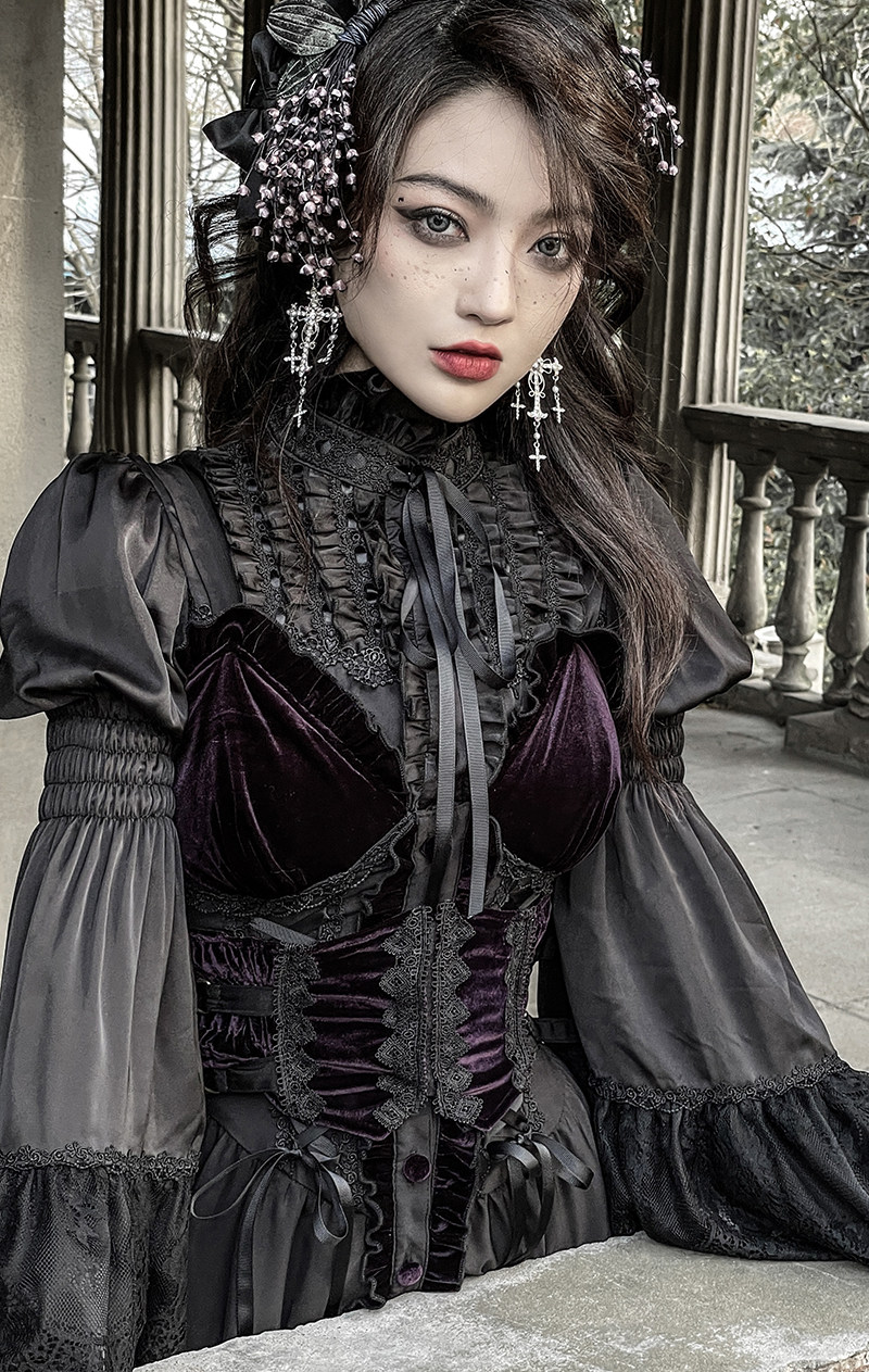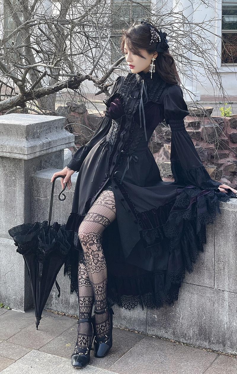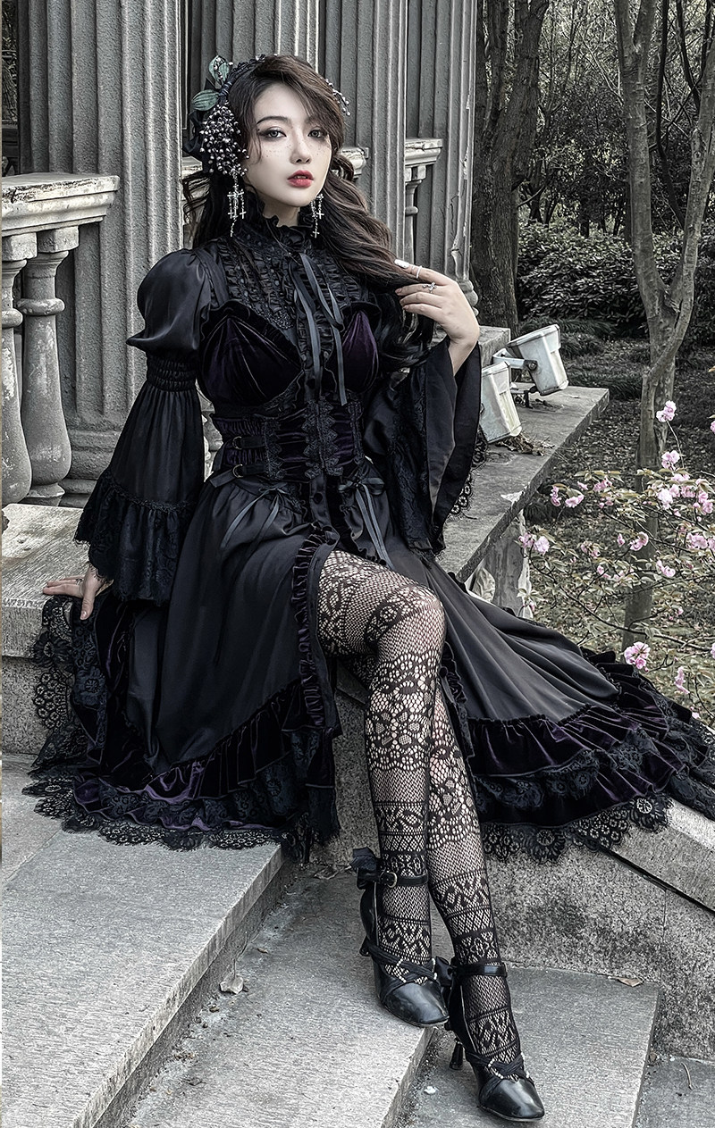 📚 【尾款】暗黑哥特风黑紫茶会姬袖不规则JSK