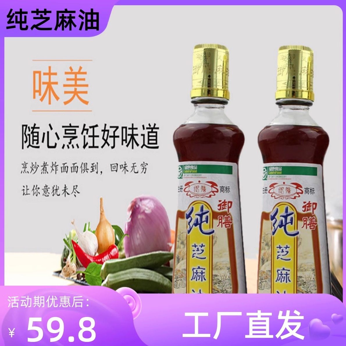 99¥ MF937 zFznURYSQMz¥ https://m.tb.cn/h.7rzwWvw 凤阳御膳麻油特产正宗芝麻油纯正香油初榨油 月子油凉拌菜450*2瓶 --------------------- 【原售价】70元 【现售价】70元。