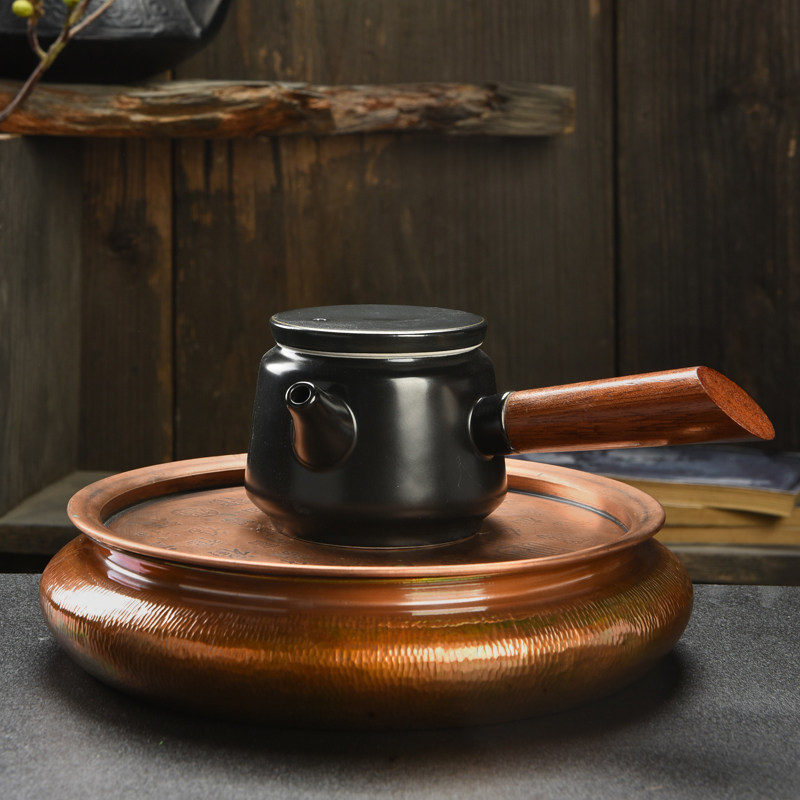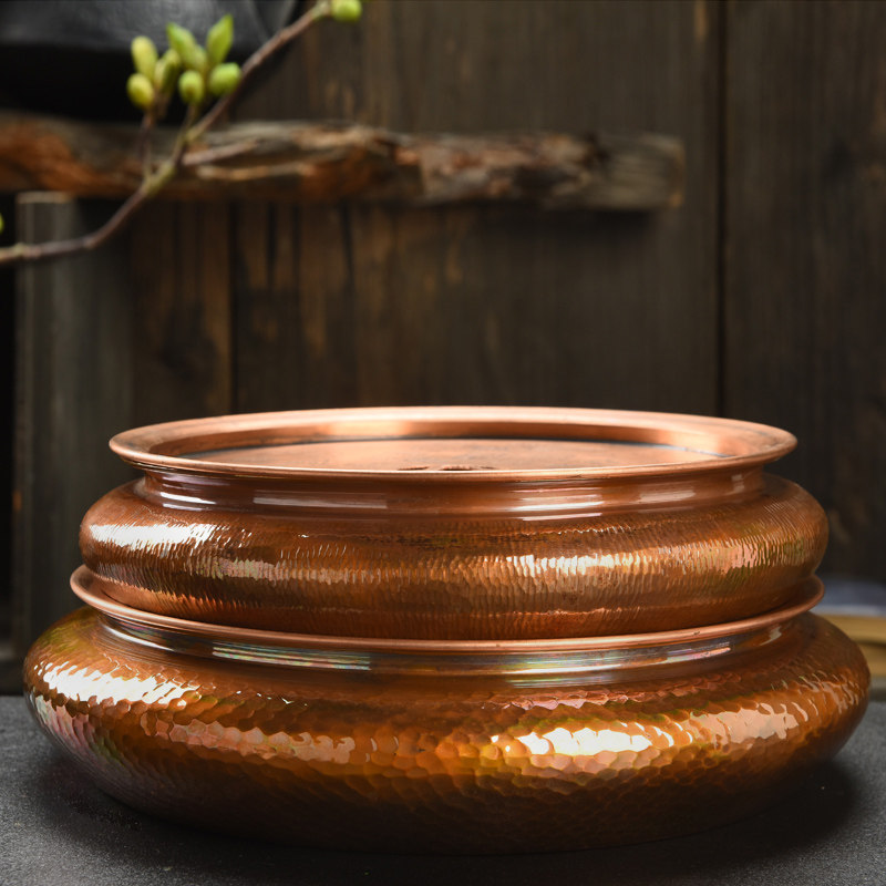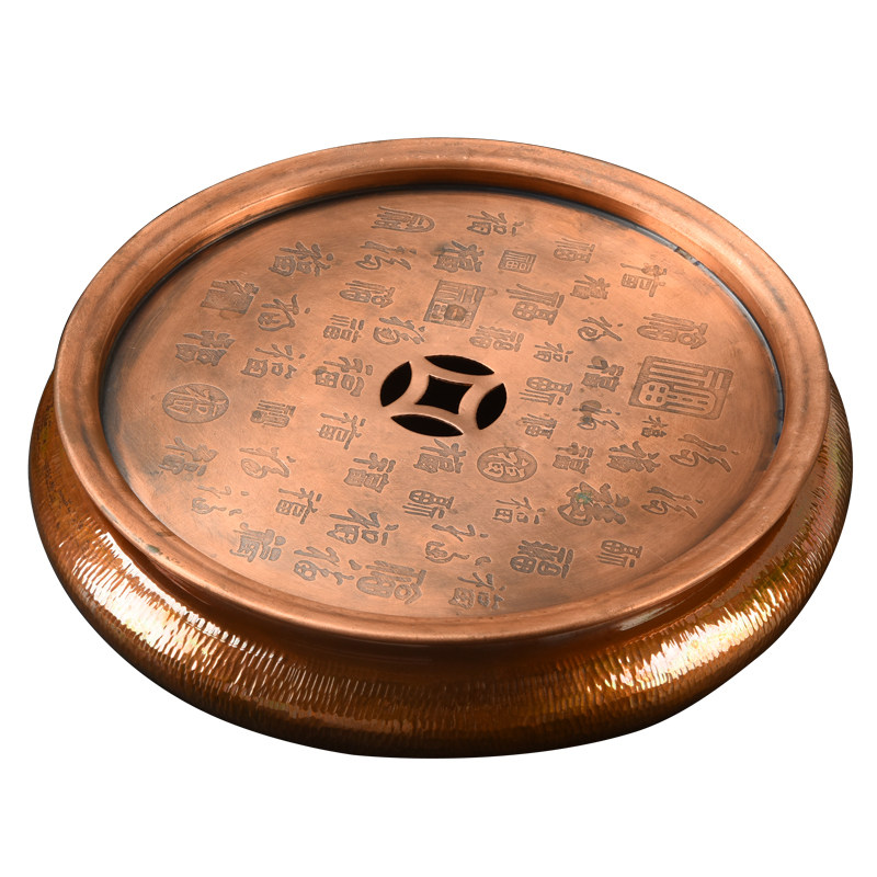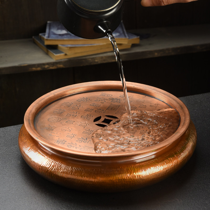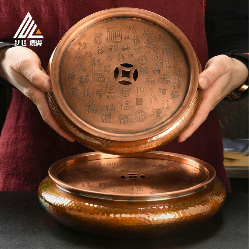 📚 兆麟紫铜壶承干泡盘手工铜制复古功夫茶盘茶船茶托茶承铜建水壶托