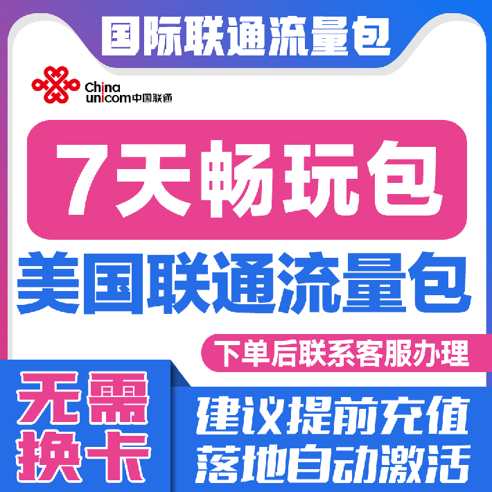 📚 中国联通国际漫游美国7天流量充值7日境外上网流量包无需换卡S