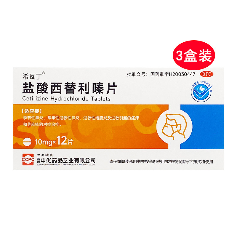 📚 三盒装】ccpc 希瓦丁 盐酸西替利嗪片12片西替利秦片西替利嗉