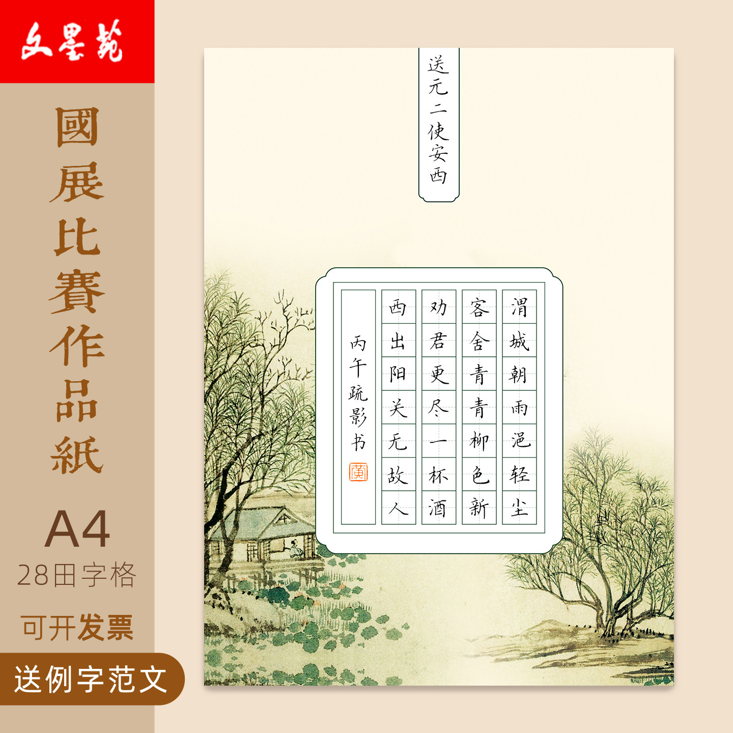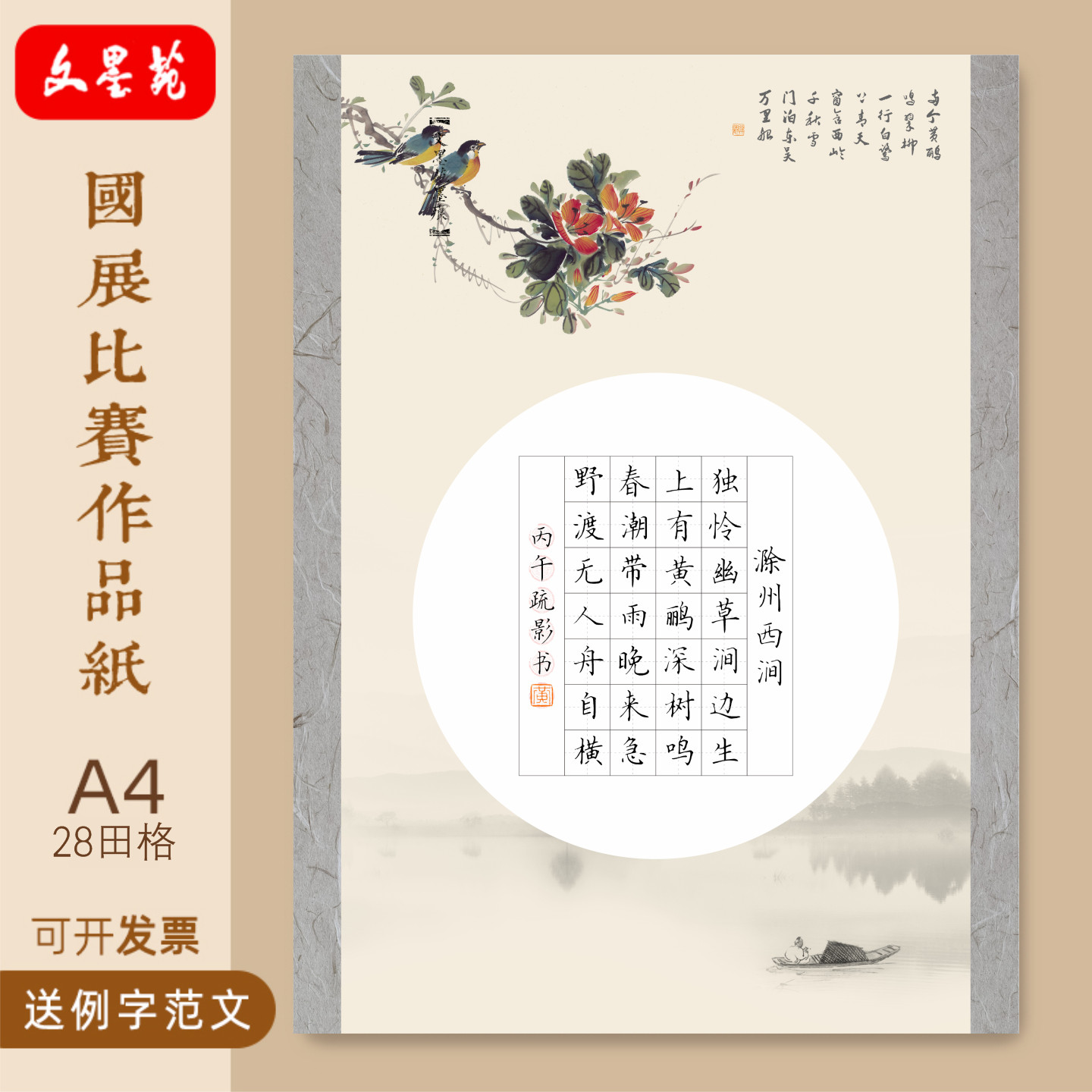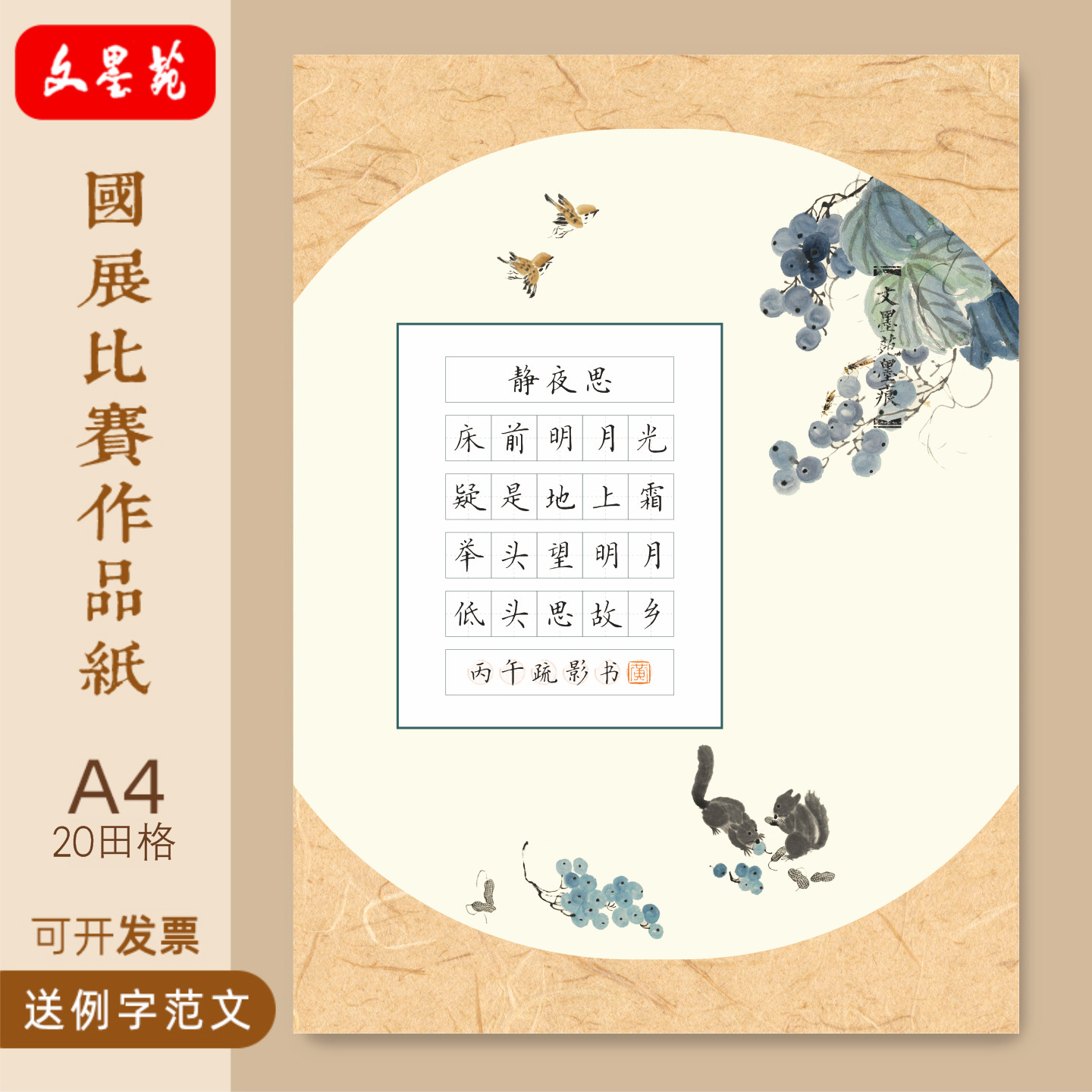📚 文墨苑古风硬笔书法比赛专用作品纸小学生古诗词16k五言诗悯农