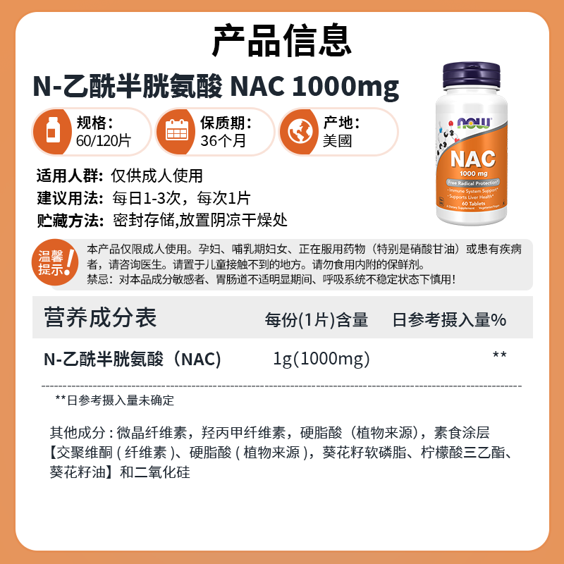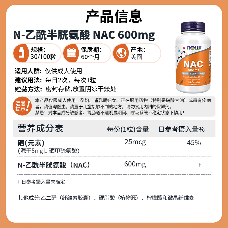 📚 now foods诺奥nac乙酰半胱氨酸nac补充剂1000mg硒片甘氨酸桥本