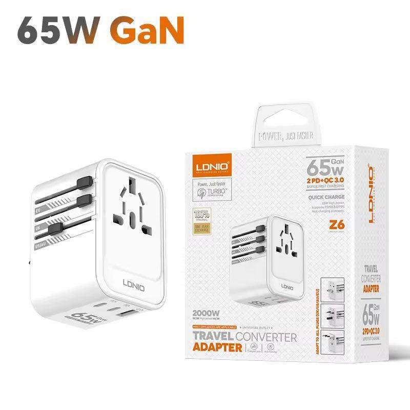 📚 LDNIO多功能全球通转换插头2个PD65W+1个QC手机平板电脑快充头USB