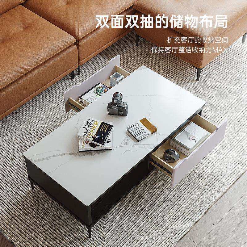 📚 双虎家私岩板茶几简约现代家用大理石纹小户型客厅电视柜组