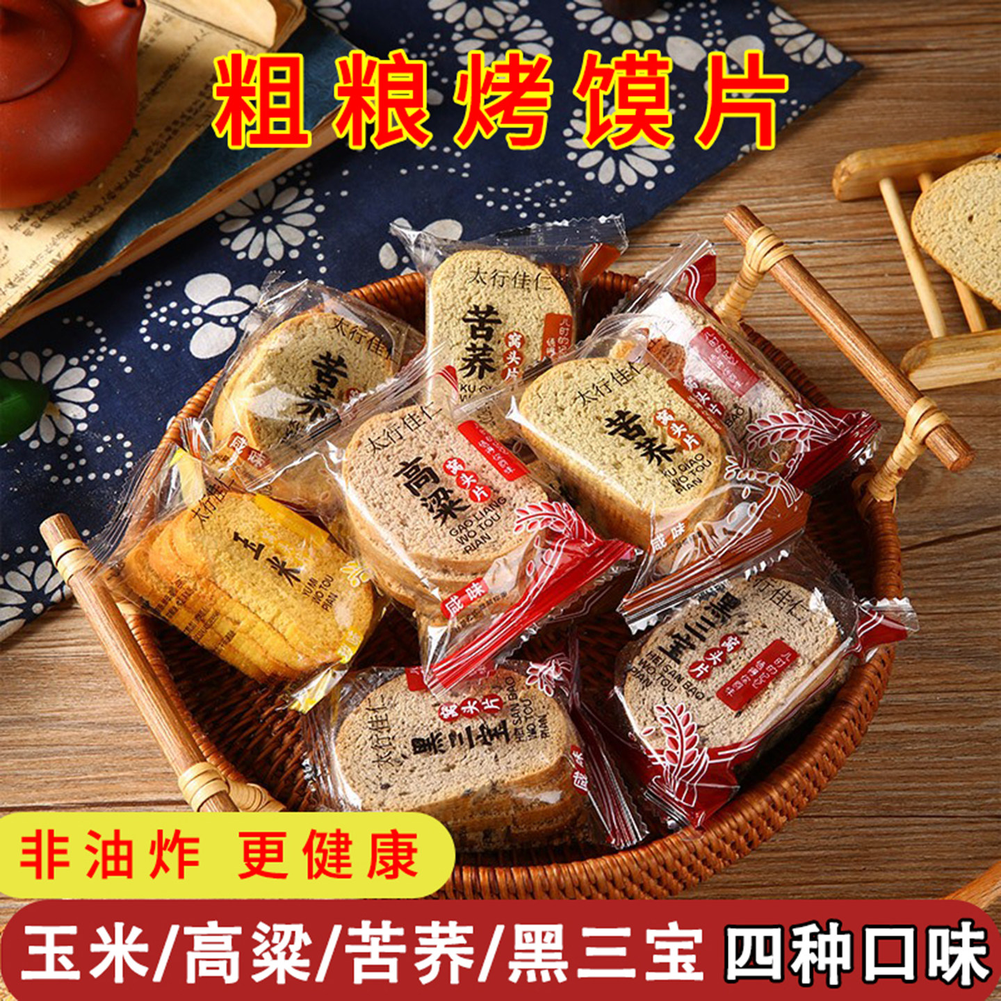 📚 红高粱馍片玉米窝头片黑三宝苦荞米万里香粗粮饼干山西烤馍景日星