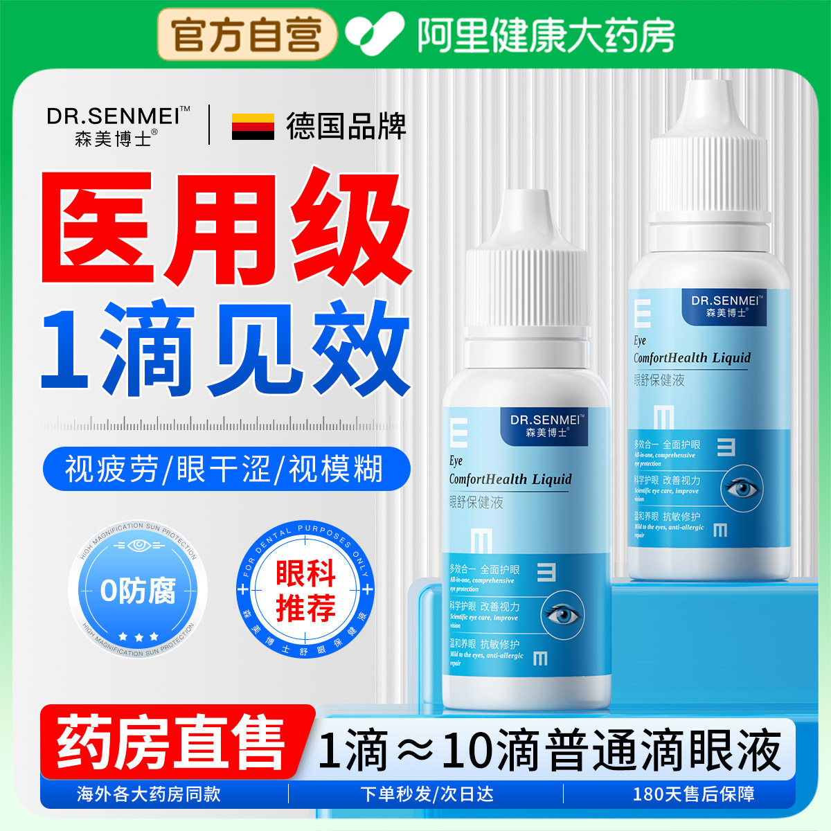 📚 叶黄素滴缓解疲劳干涩眼液玻璃酸钠人工泪眼药水视力下降模糊近视