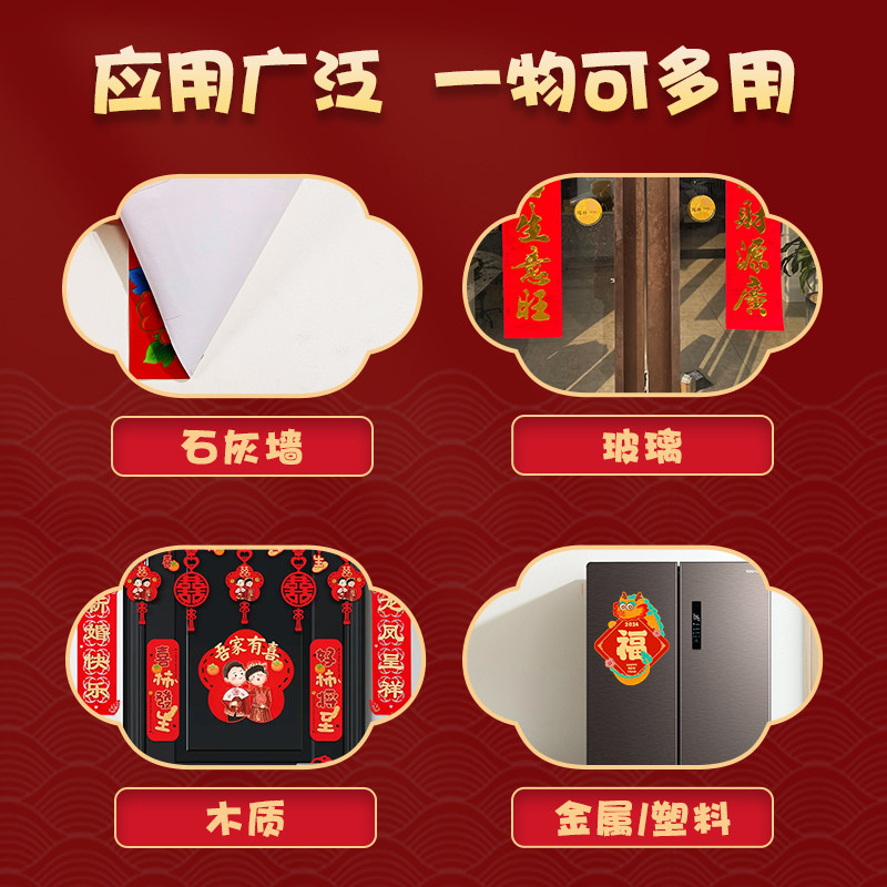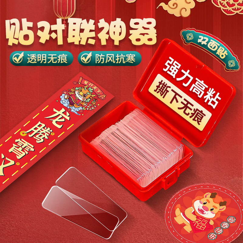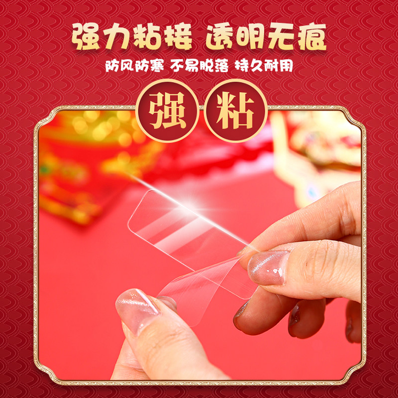 📚 新年贴对联双面胶粘春联不留残胶强力高粘度2026款无痕纳米胶贴片透明胶带网格布基粘墙固定春联贴专用双面胶