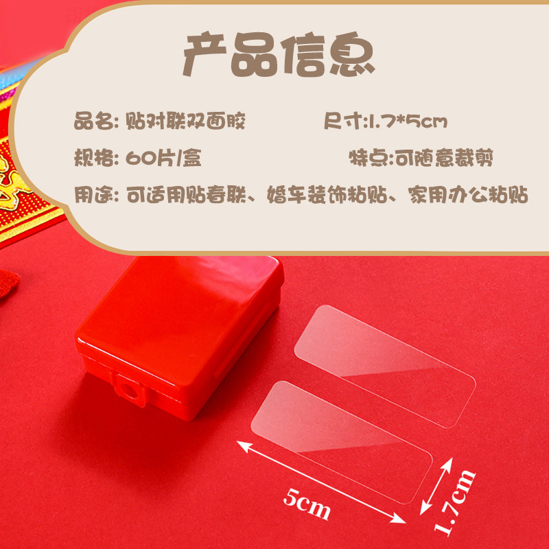 37¥ CZ356 Y1G8U9CQBHI¥ https://m.tb.cn/h.7GvF3TY 新年贴对联双面胶粘春联不留残胶强力高粘度2026款无痕纳米胶贴片透明胶带网格布基粘墙固定春联贴专用双面胶 --------------------- 【原售价】19.9元 【现售价】3.4元。