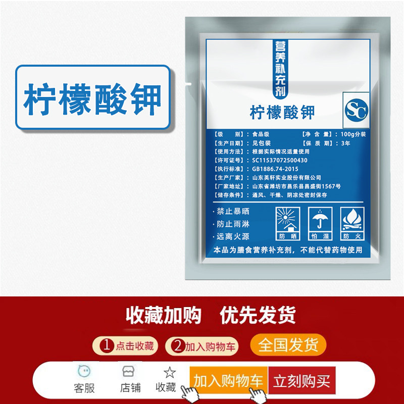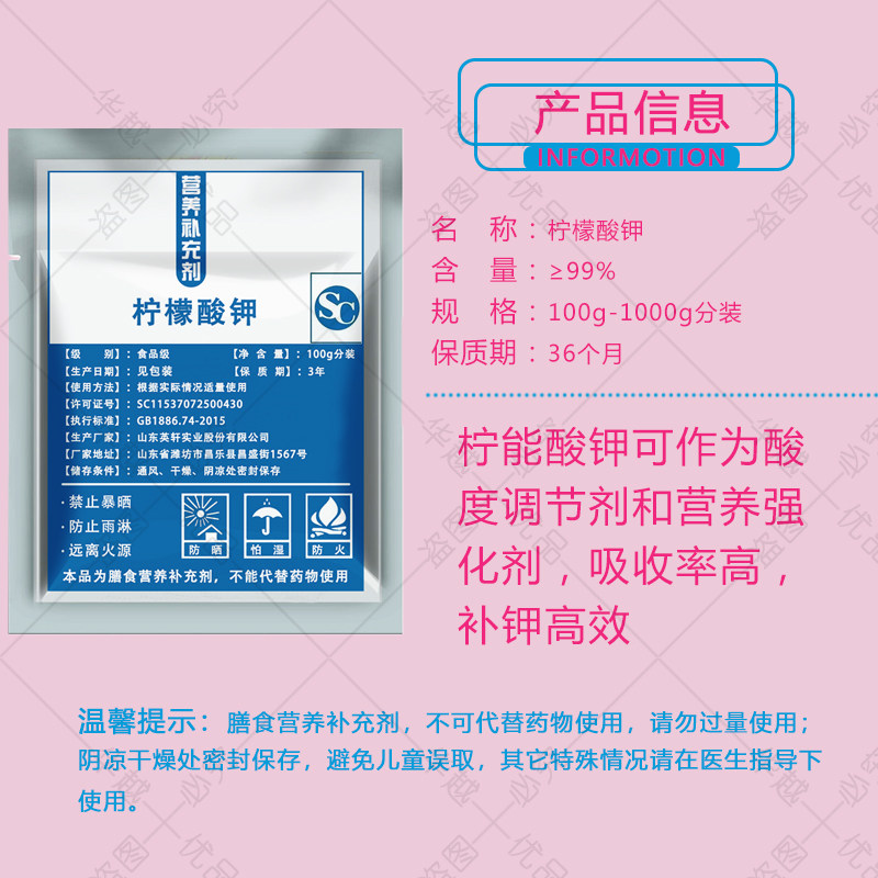 📚 柠檬酸钾99%高含量补充钾元素矿物质酸碱平衡生酮钾食品级原料粉
