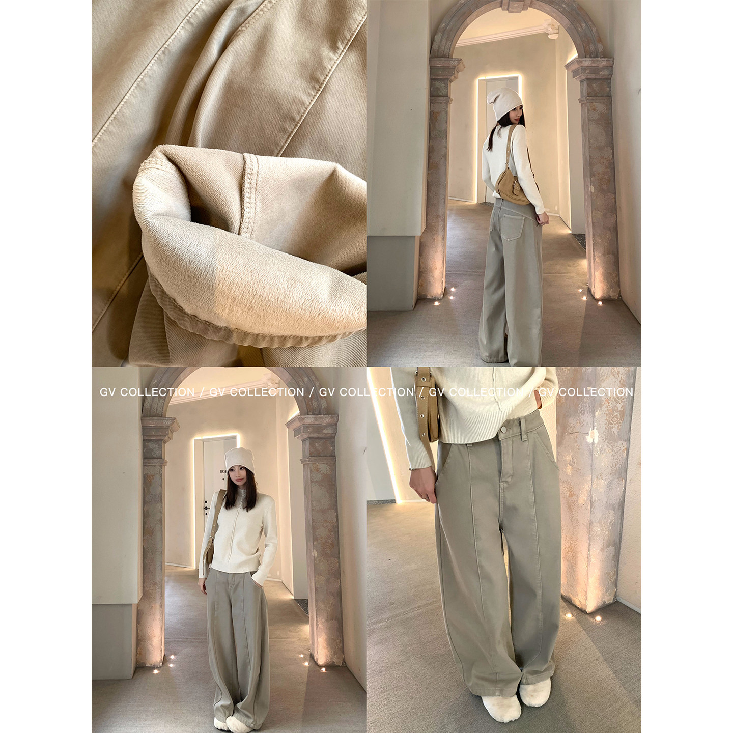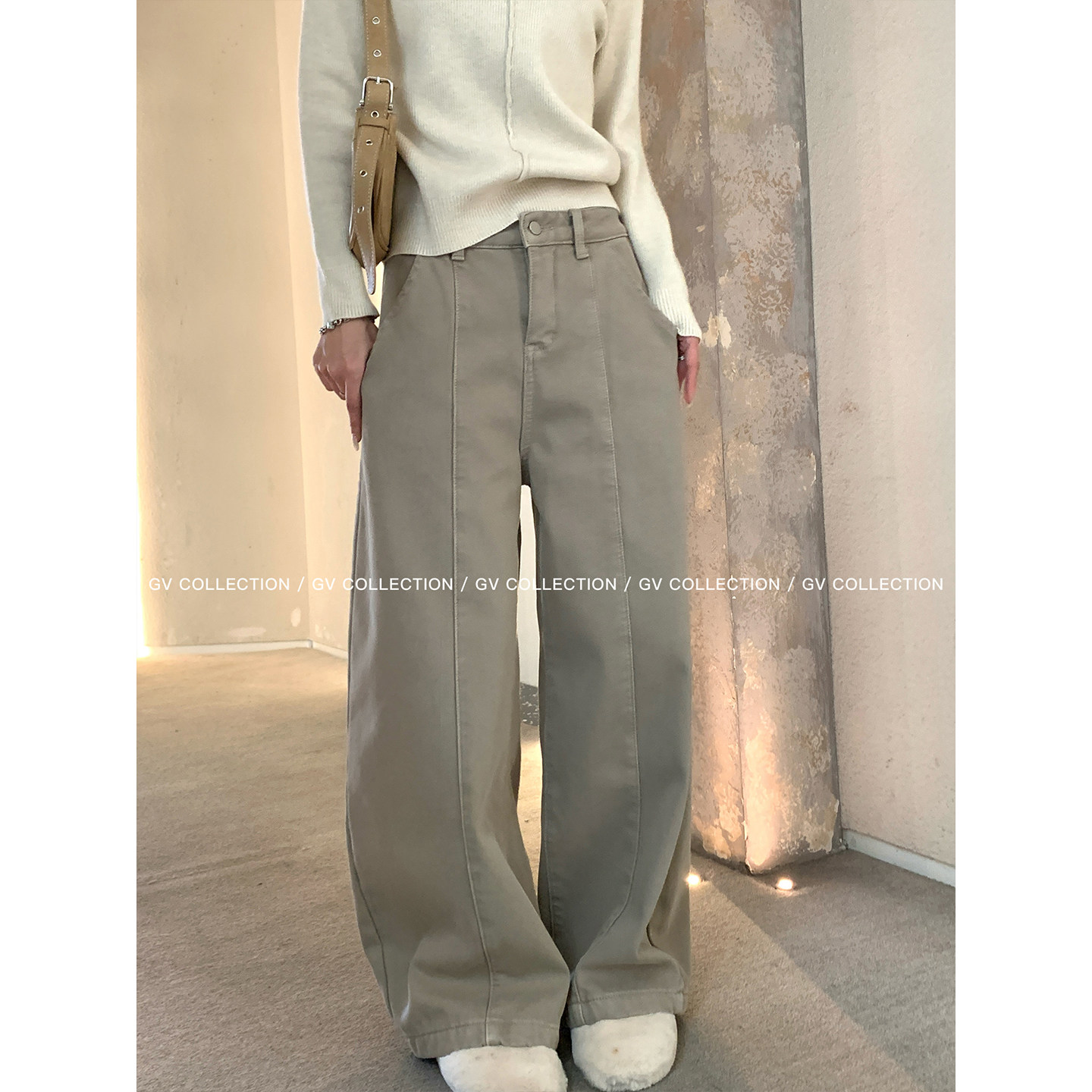 📚 GV大白哥 竖线立体 加绒加厚解构直筒牛仔裤秋冬新款裤子女遮肉