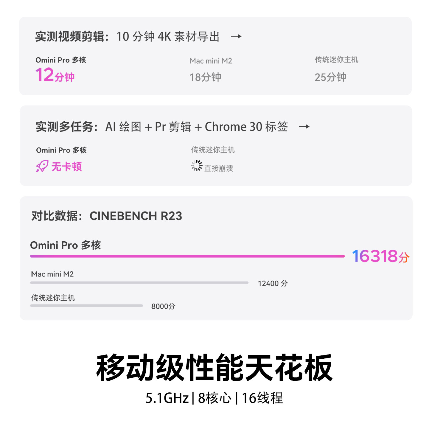 📚 奥睿科Omini Pro mini迷你主机台式办公高配客厅电视游戏娱乐超小型便携式小机箱微型电脑主机AI家用全套