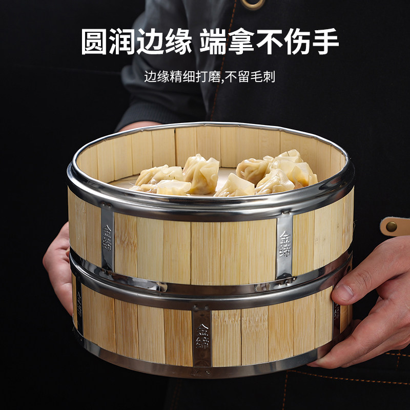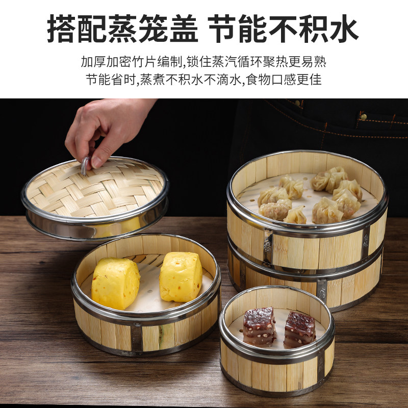 📚 不锈钢家用竹蒸笼商用点心蒸屉竹制小笼包蒸饭笼蒸格竹编饺子笼屉