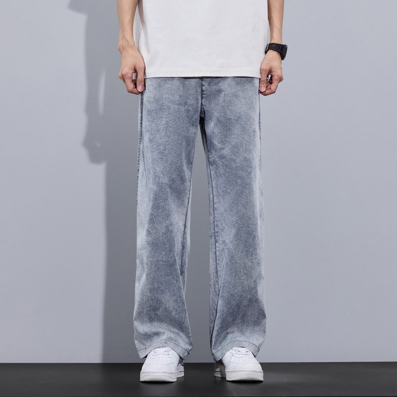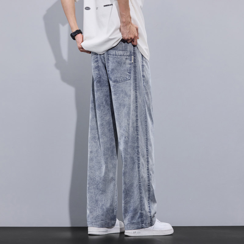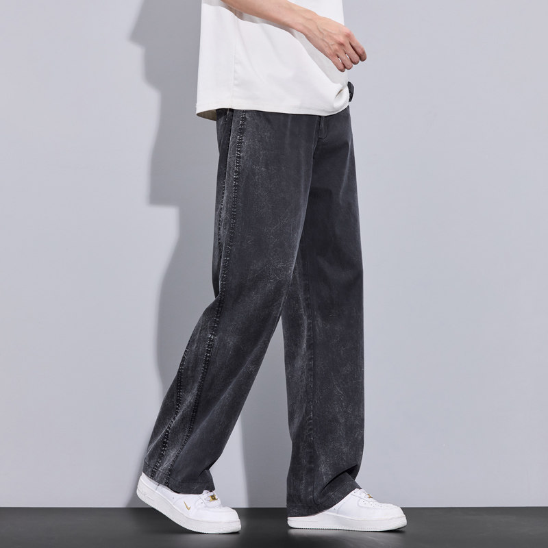 📚 Jeans Men Lyocell Loose Straight WideLeg Pants Elastic Waist
