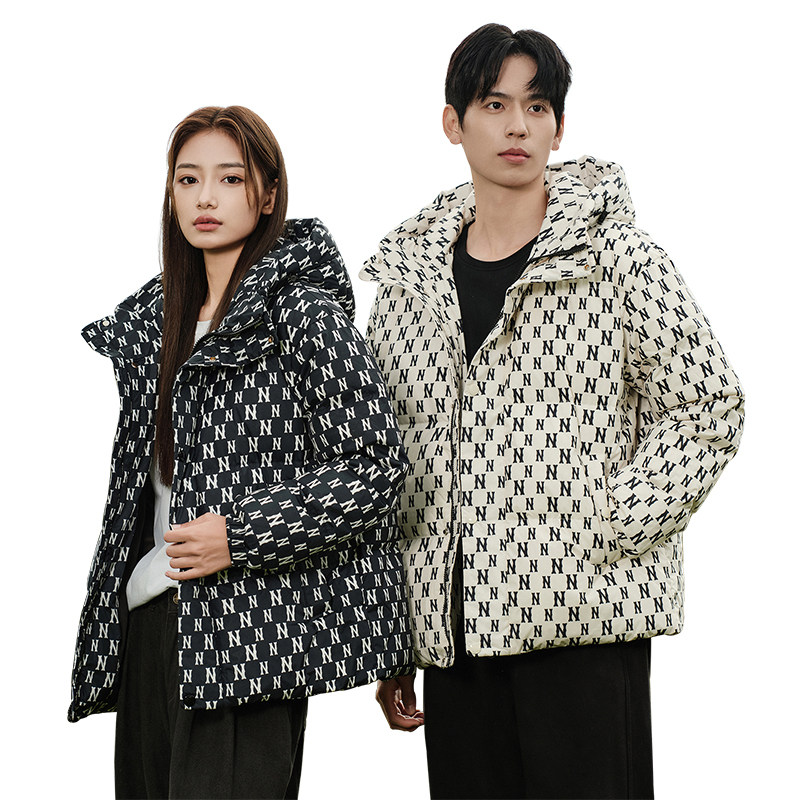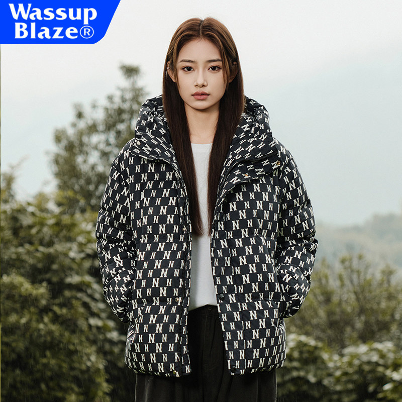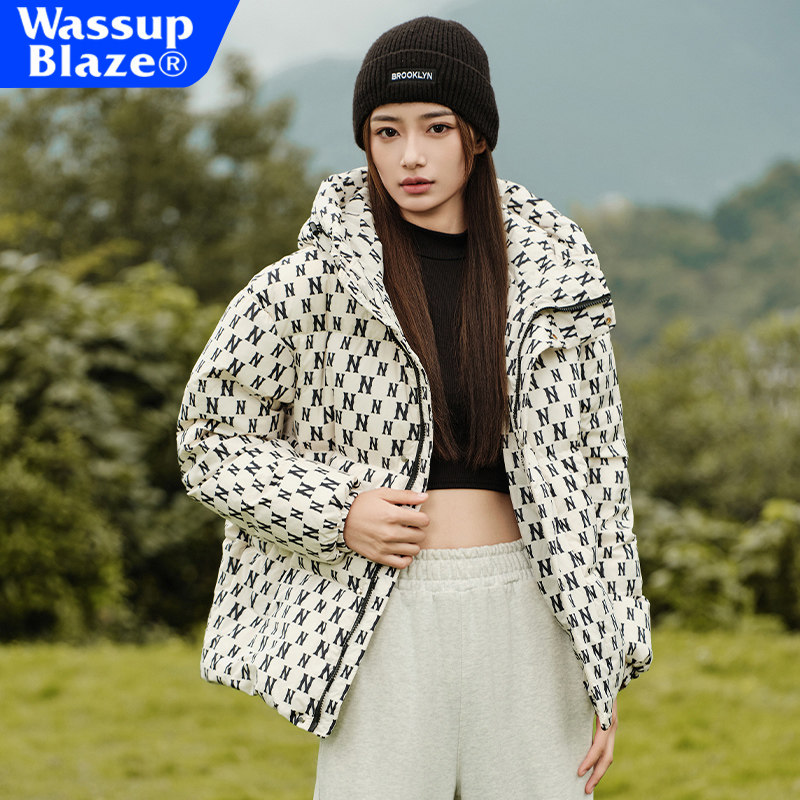 📚 WASSUP羽绒服男款2024老花满印外套情侣款连帽冬洋基队加厚上衣女
