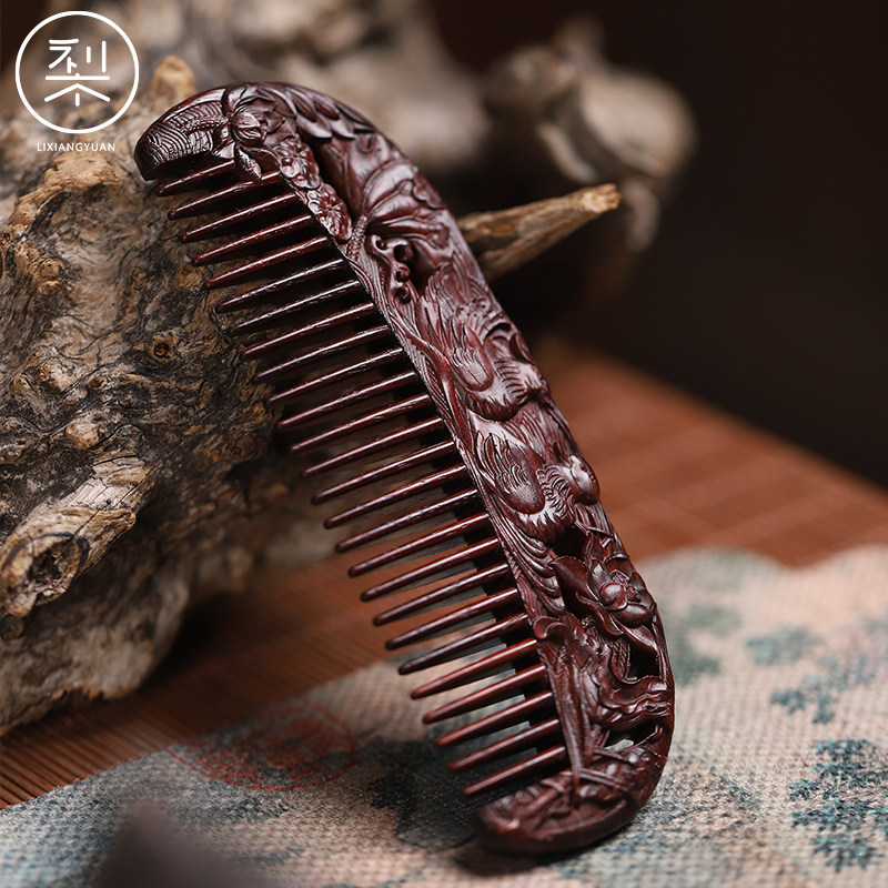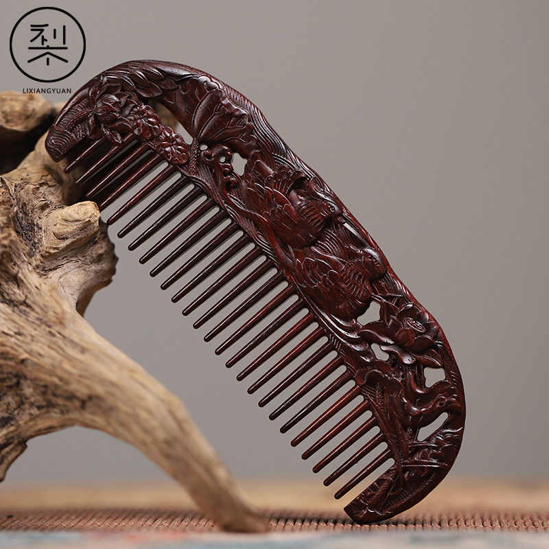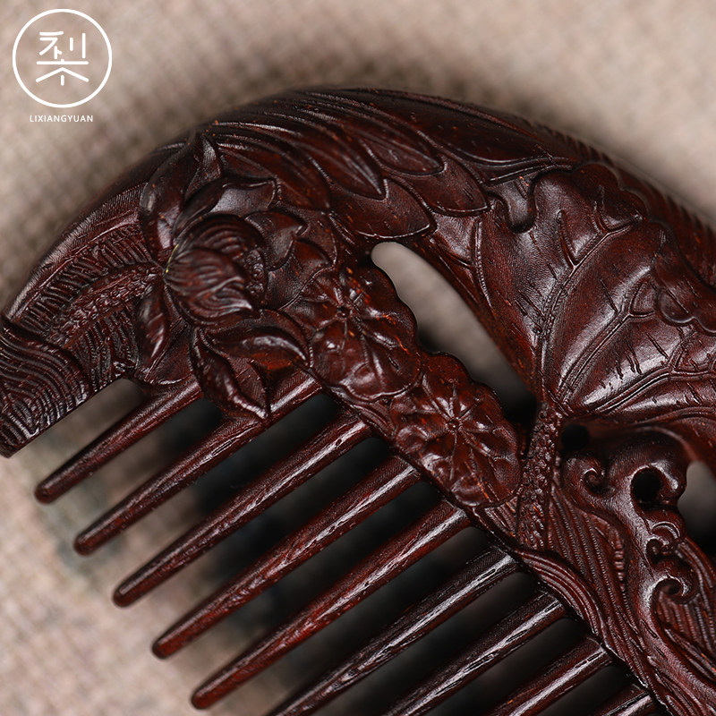 📚 梨香院印度小叶紫檀喜结连理鸳鸯梳子檀香紫檀红木送礼头梳红木雕