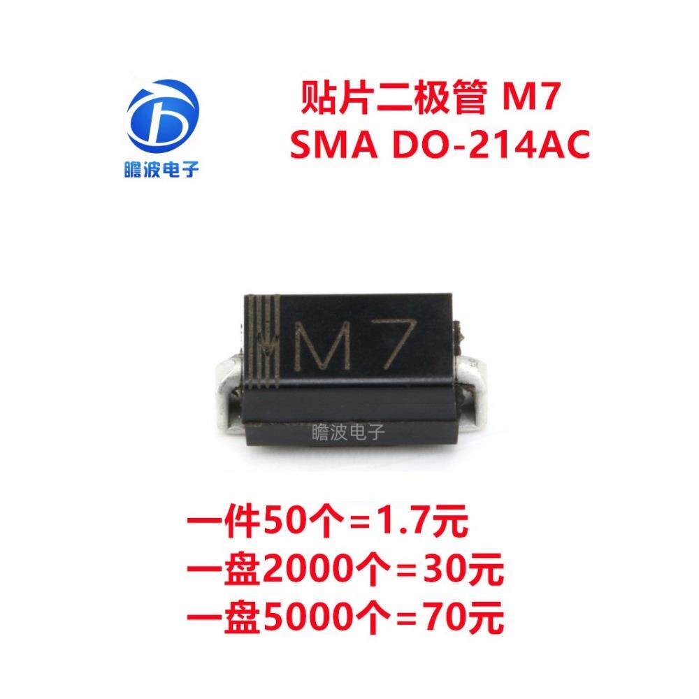 📚 贴片整流二极管 M7 1N4007 1A/1000V DO-214AC/SMA 丝印M7 包邮