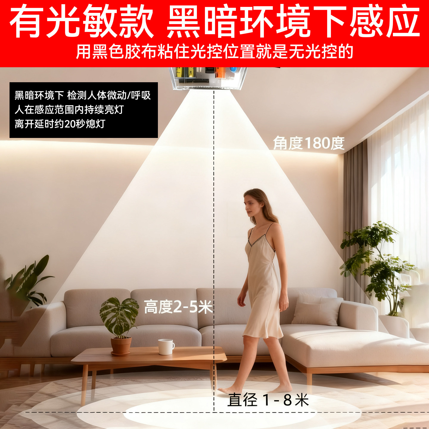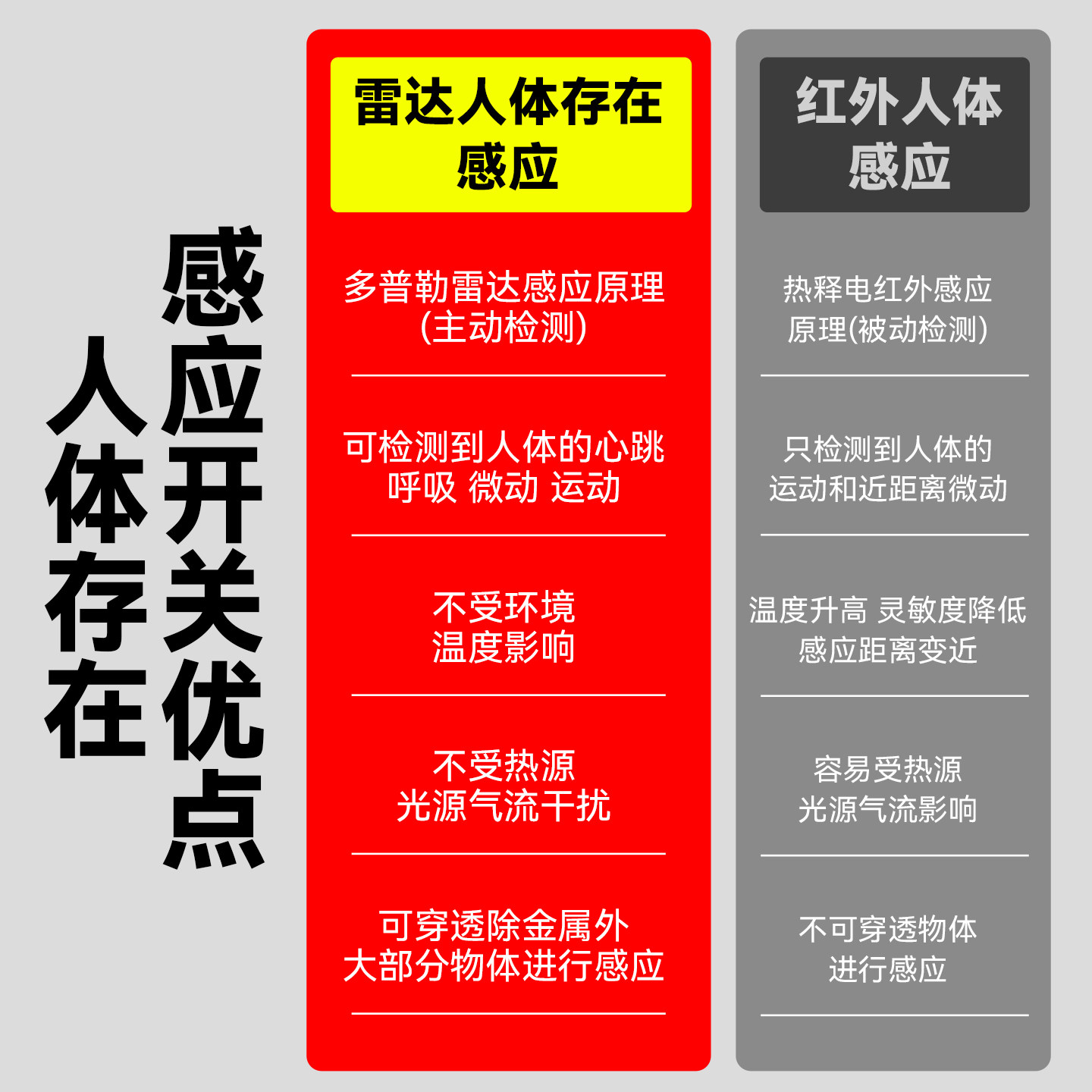 📚 人体存在感应开关延时动态静态智能检测毫米波雷达控制器人在灯亮