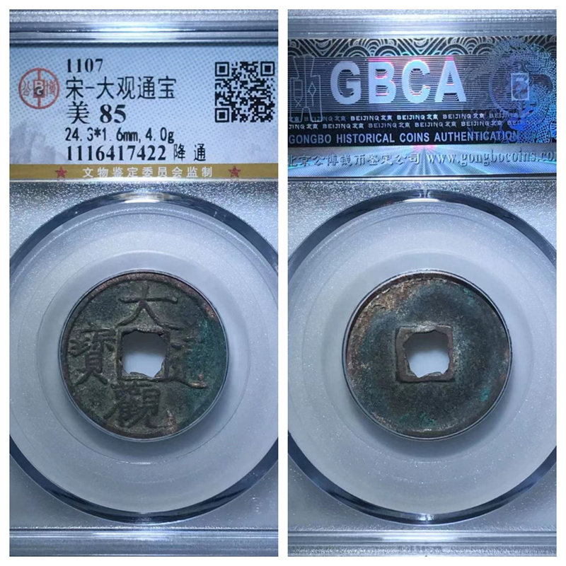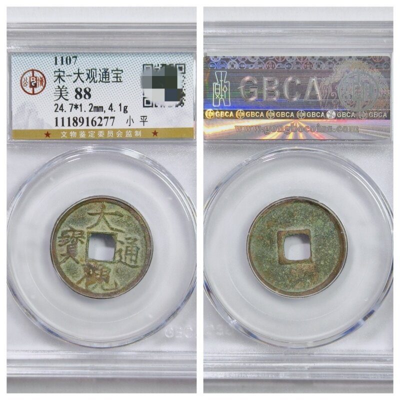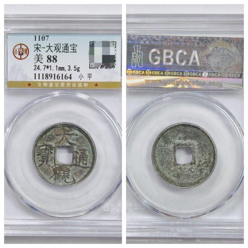 📚 公博美88评级1107北宋大观通宝降通短尾大瘦金体古代老铜钱币收藏
