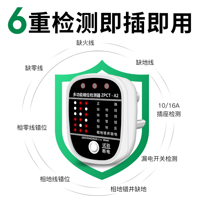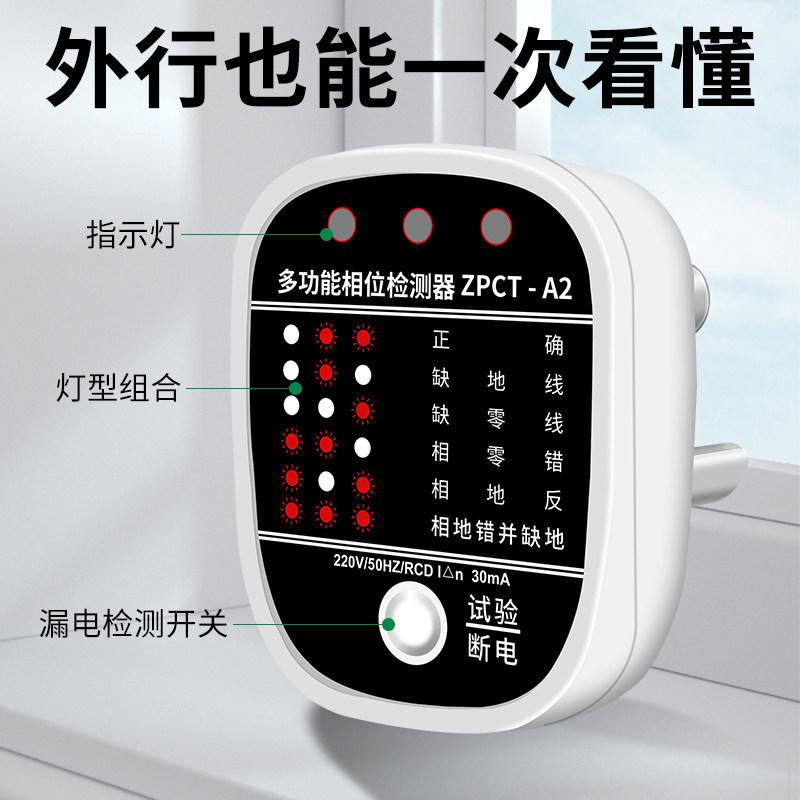 📚 插座多功能测试相位检测仪电源极性检测器10/16两用验电测电仪