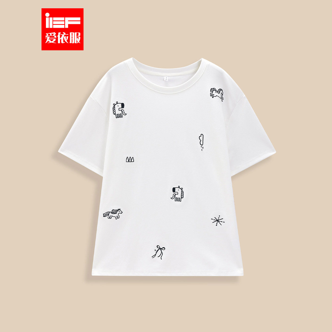 📚 IEF/爱依服上衣2026春季新款韩版时尚小众设计感印花通勤百搭T恤