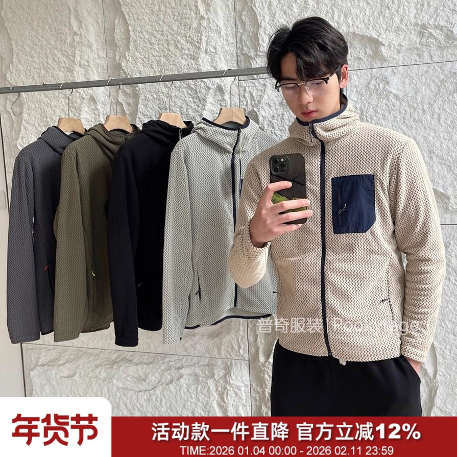 📚 户外R1平替高端波浪纹保暖秋冬情侣拉链连帽打底衫中间层抓绒卫衣