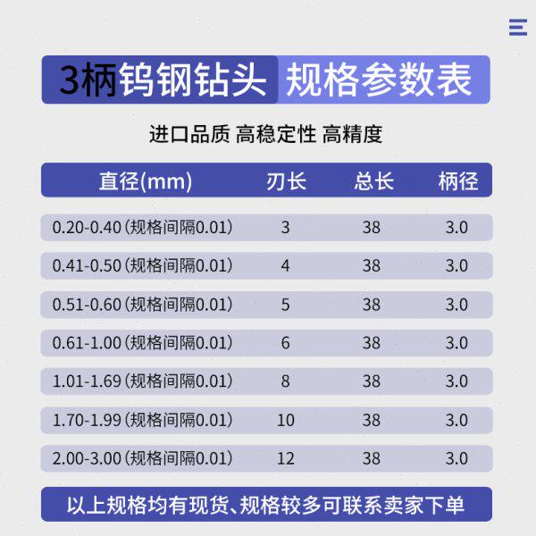📚 硬质合金超硬钨钢定柄钻头1.95 1.96 1.97 1.98 1.99 2.01 2.02