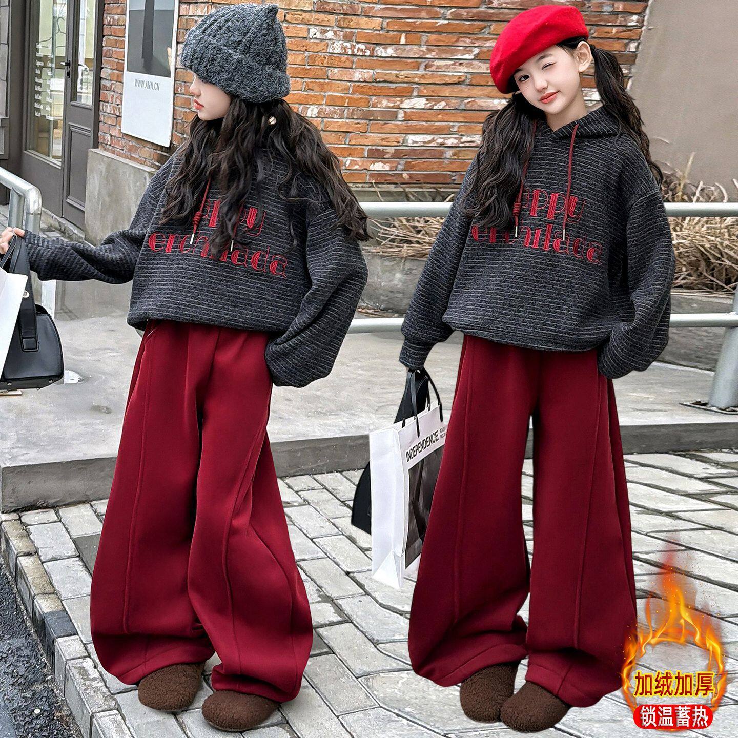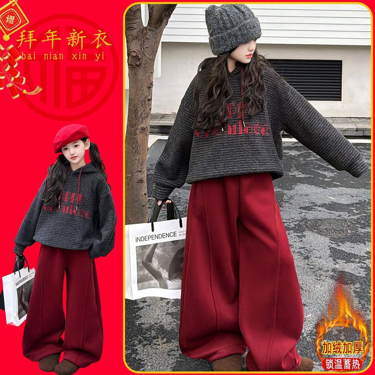 📚 女童新年卫衣套装加绒加厚秋冬季2026新款儿童冬装女大童红色衣服