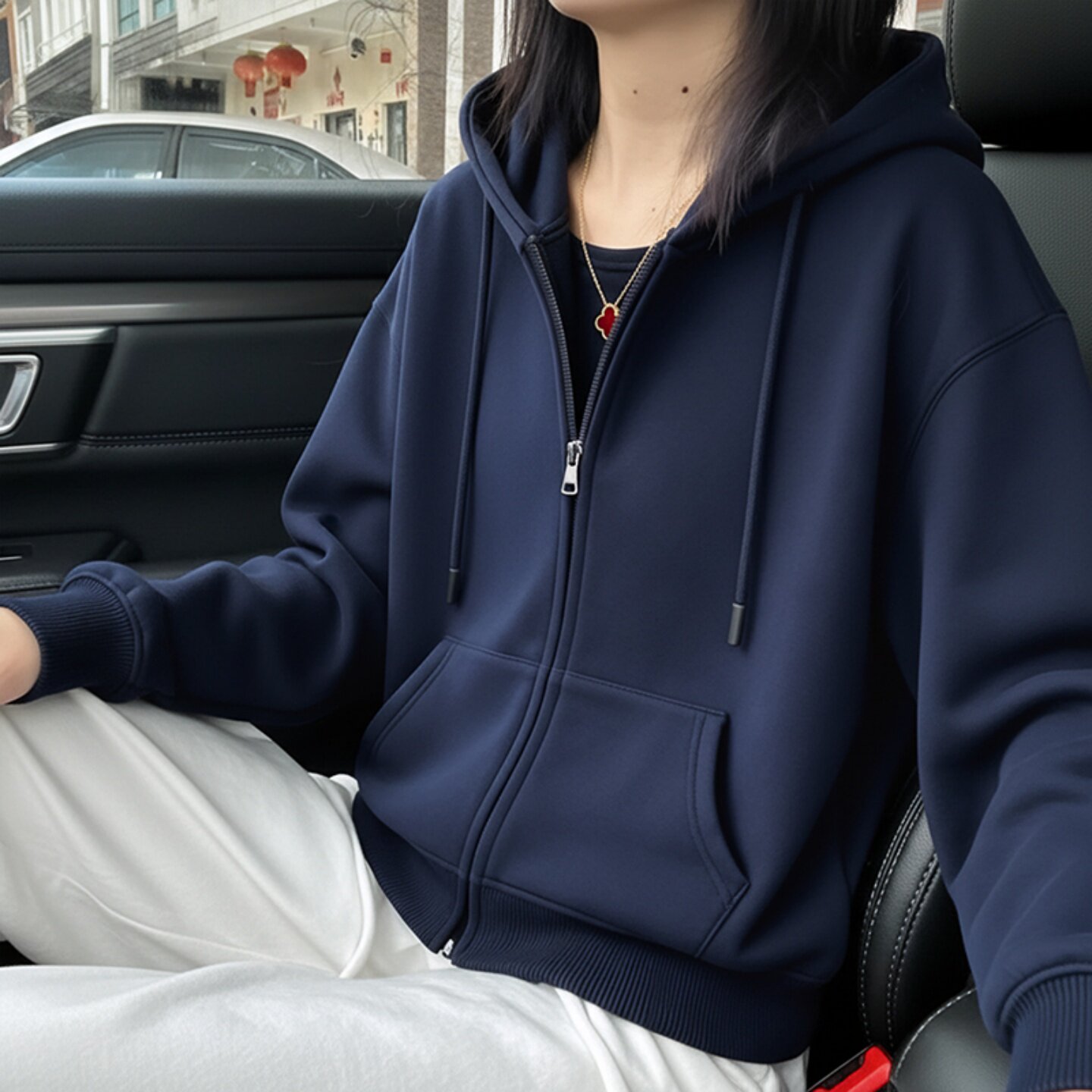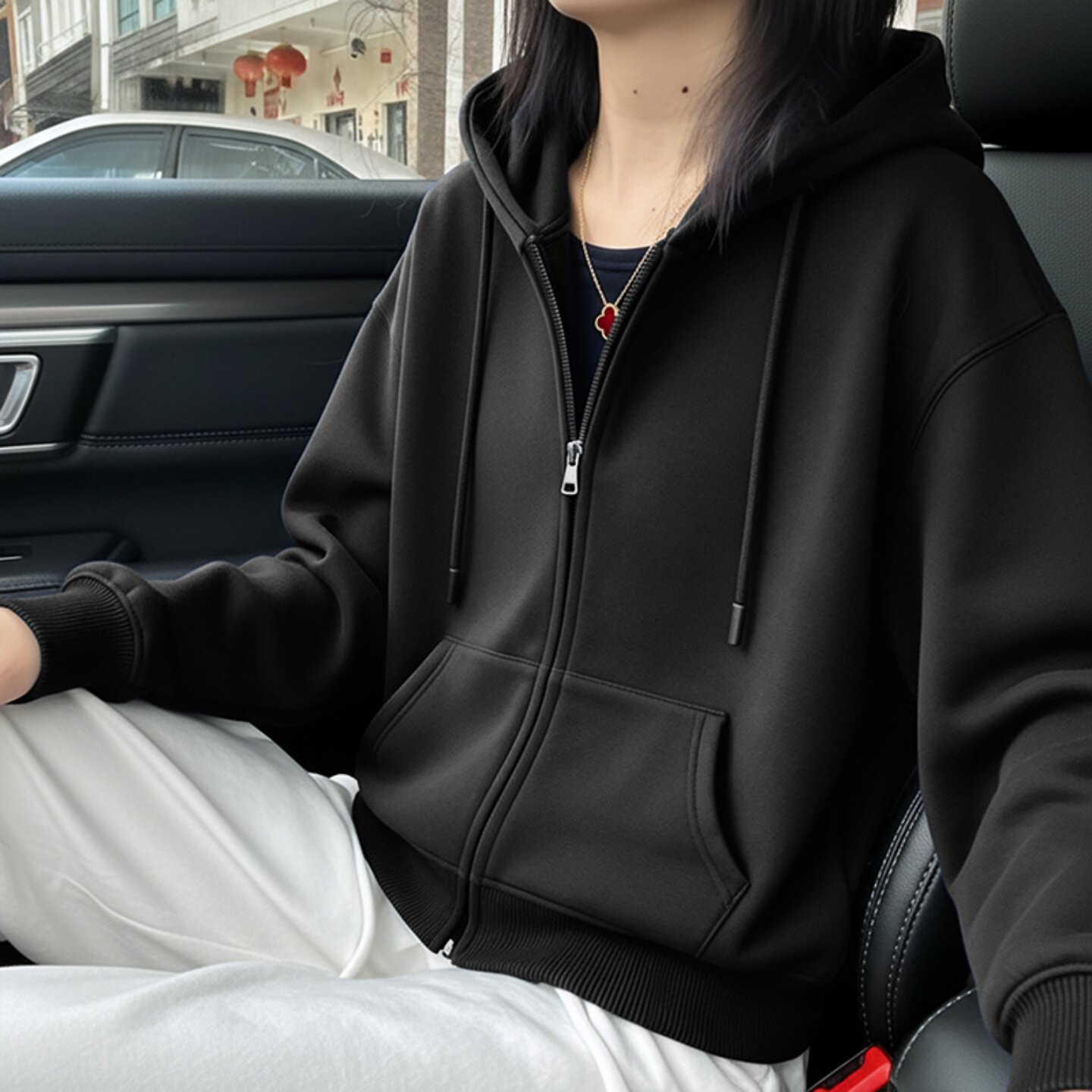 📚 开衫外套拉链连帽加绒短款卫衣女2025新款宽松慵懒风红色保暖上衣