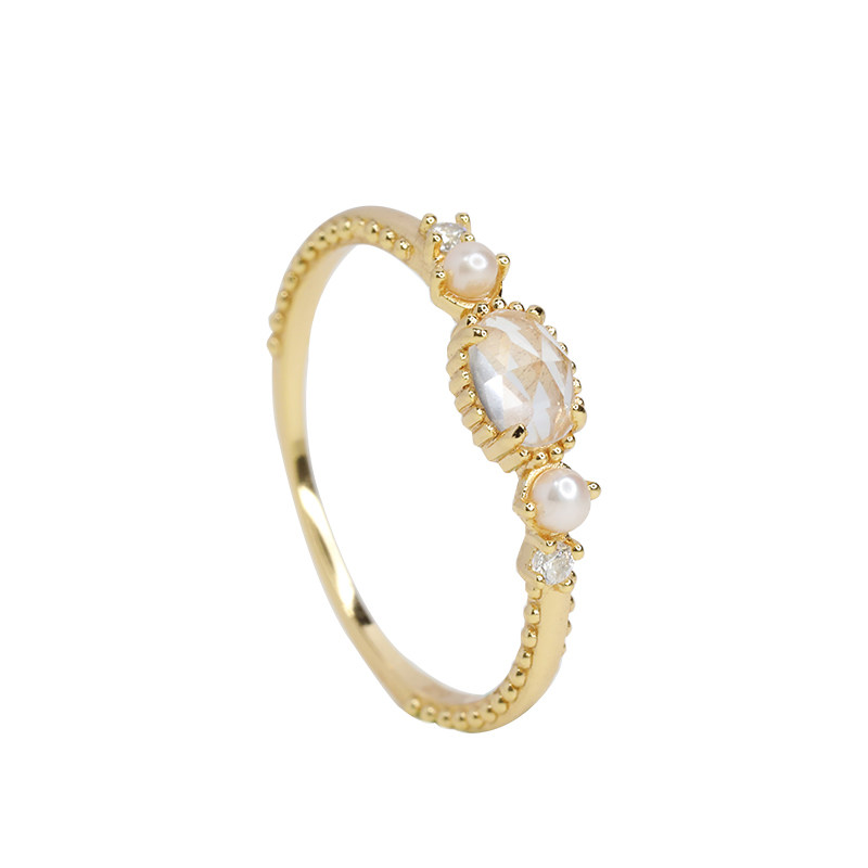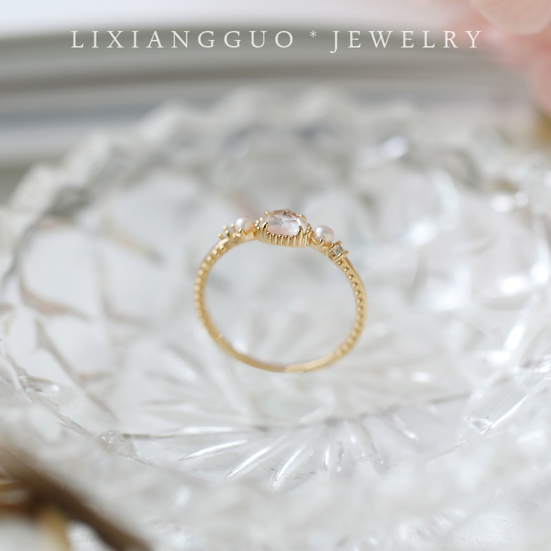 📚 《克罗斯玫瑰花园》轻宫廷风复古奶油感天然珍珠白水晶S925银戒指