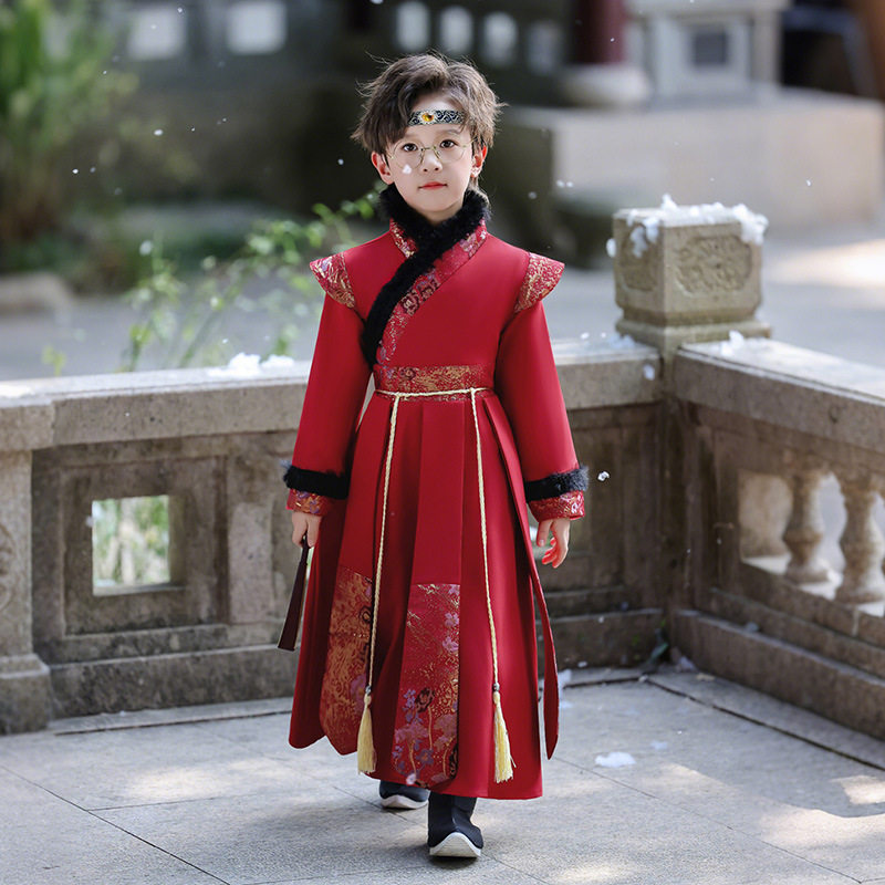 📚 明制汉服男童冬装拜年服套装古风帅气儿童古装斗篷保暖服装交领