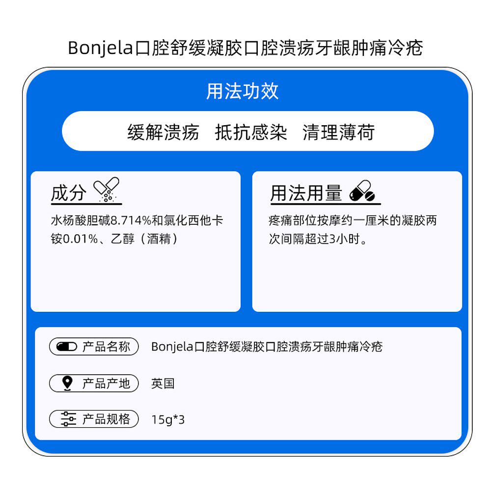 📚 欧洲直邮Bonjela保治灵口腔舒缓凝胶3*15g溃疡牙龈肿痛冷疮假牙痛