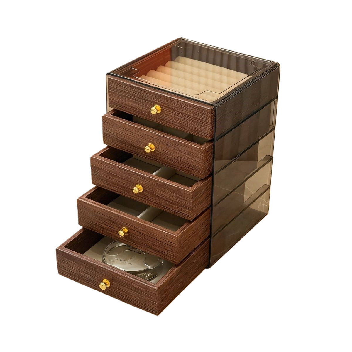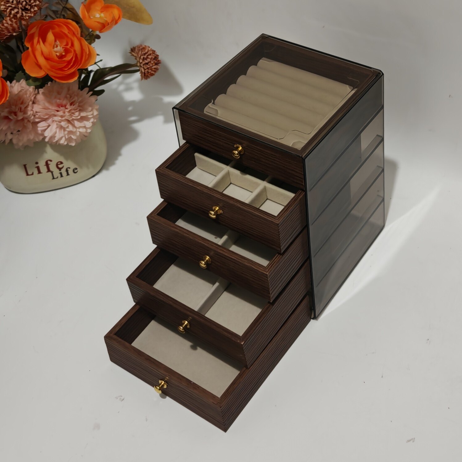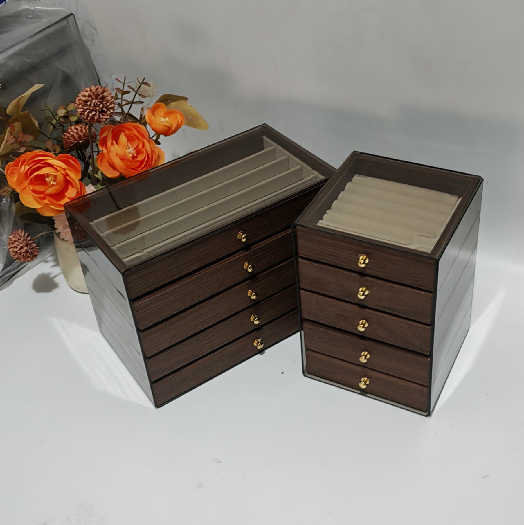 📚 复古桃木纹项链收纳盒珍珠项链大容量桌面长手链珠子多层首饰盒