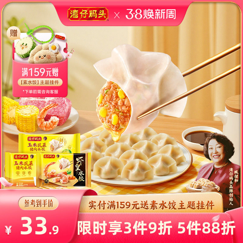 📚 湾仔码头玉米水饺大白菜三鲜韭菜猪肉饺子1320g蒸饺煎饺速食早餐