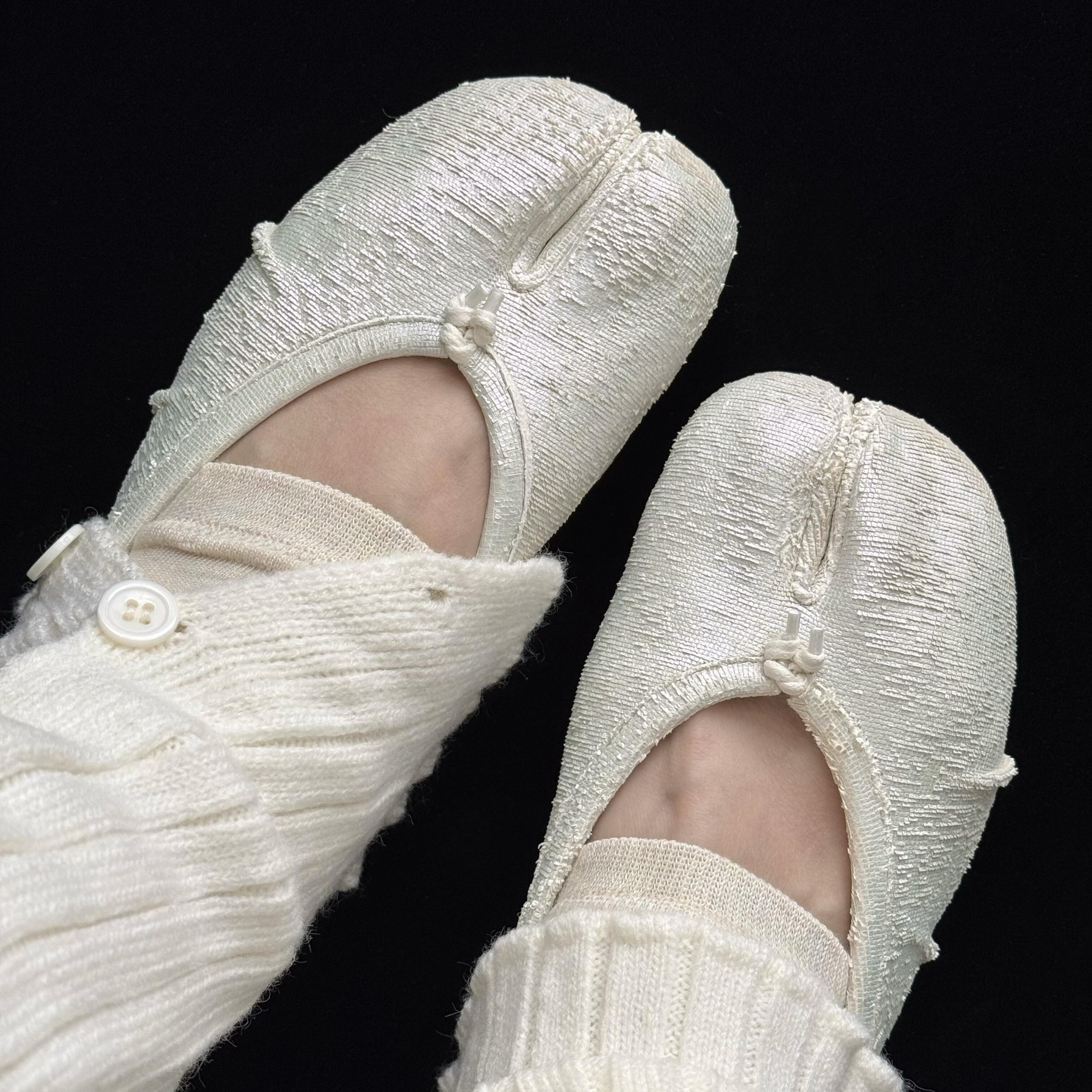📚 人鱼姬tabi分趾鞋女 2025夏新款猪蹄浅口镭射切割羊皮芭蕾舞单鞋