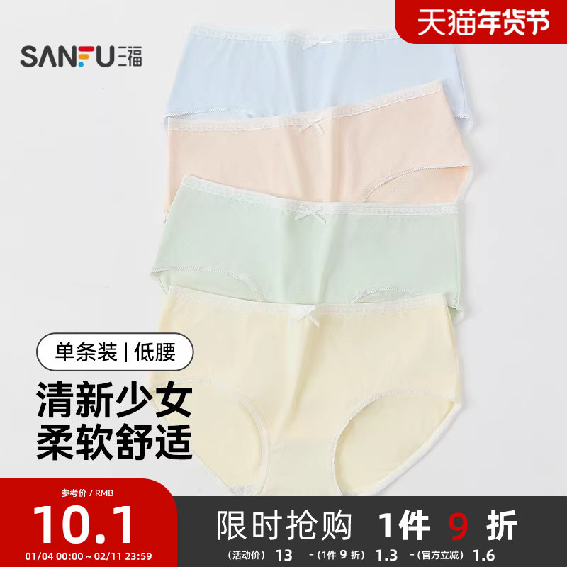 📚 三福女生低腰不夹臀透气内裤女简约性感柔软纯棉裆三角裤女438083