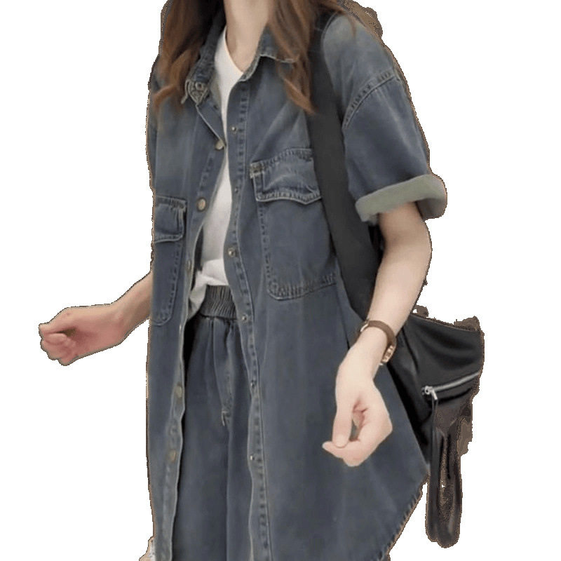 📚 梨形身材穿搭大码女装年牛仔外套短裤宽松显瘦两件套时尚套装