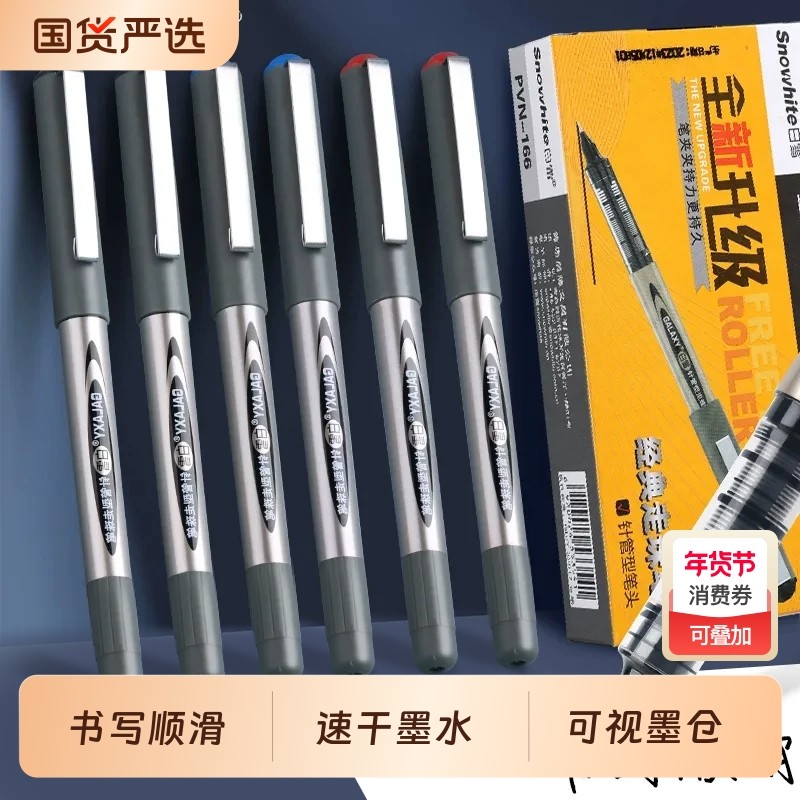 📚 白雪直液式走珠笔中性笔155/166全针管型子弹头黑色碳素水笔0.5mm考试用签字笔学生用圆珠蓝红笔ins日系文具