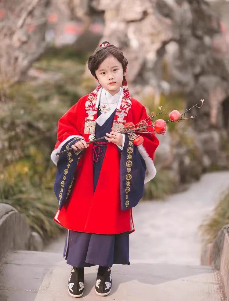📚 加绒男童汉服冬季拜年服道袍宋制唐装少爷过年服明制加厚女童男女