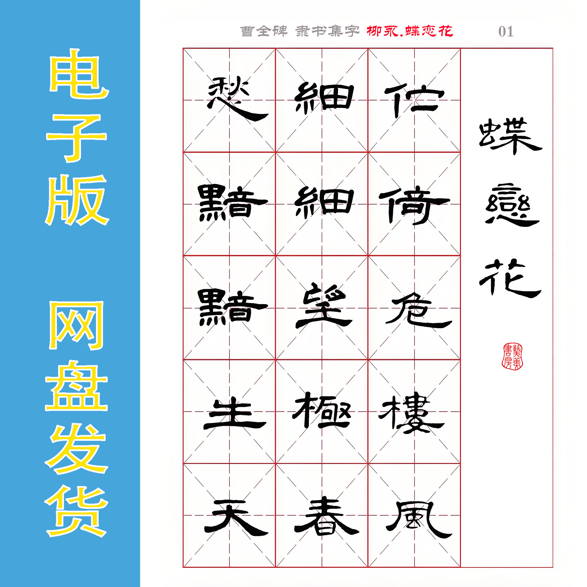 87¥ CZ321 bJHv5h4oSXv¥ https://m.tb.cn/h.iJ6CX4Z 曹全碑 隶书集字宋词 柳永《蝶恋花》书法字帖 电子版 PDF 全4页 --------------------- 【原售价】2.6元 【现售价】2.6元。