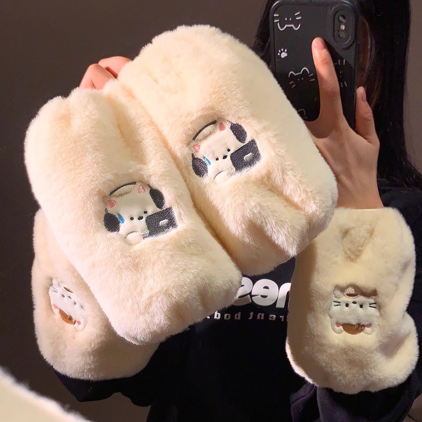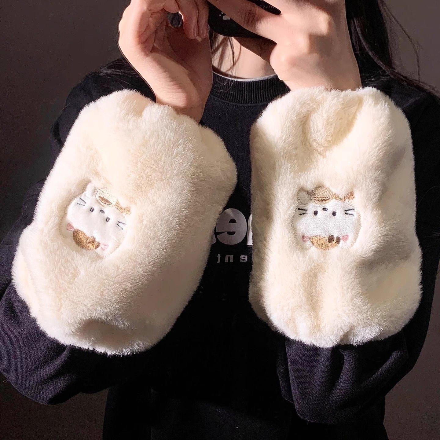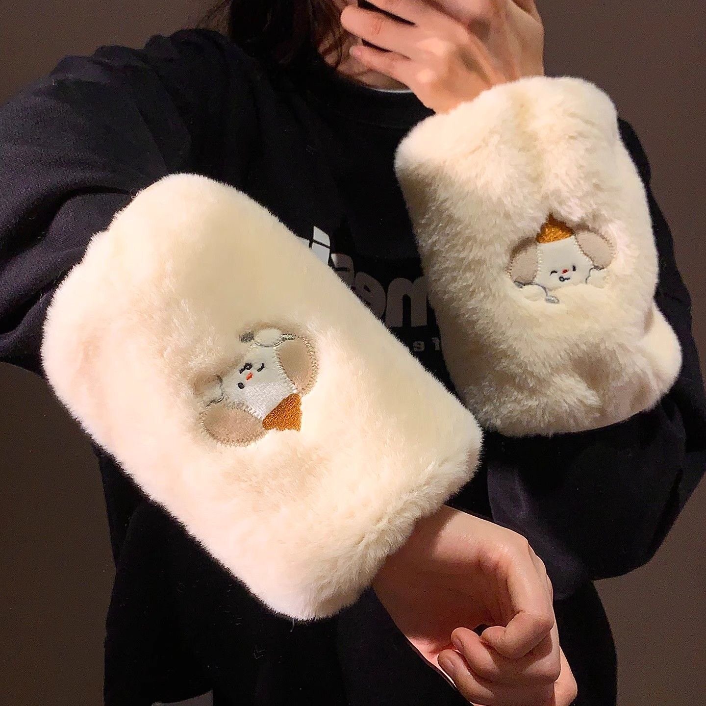 📚 可爱毛绒袖套成人女生儿童长款防脏手袖冬季羽绒服套袖小熊男护袖