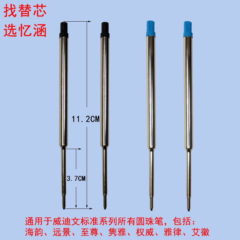 📚 忆涵11.2CM圆珠笔芯1.0顺滑适用waterman威迪文海韵权威雅律艾徽