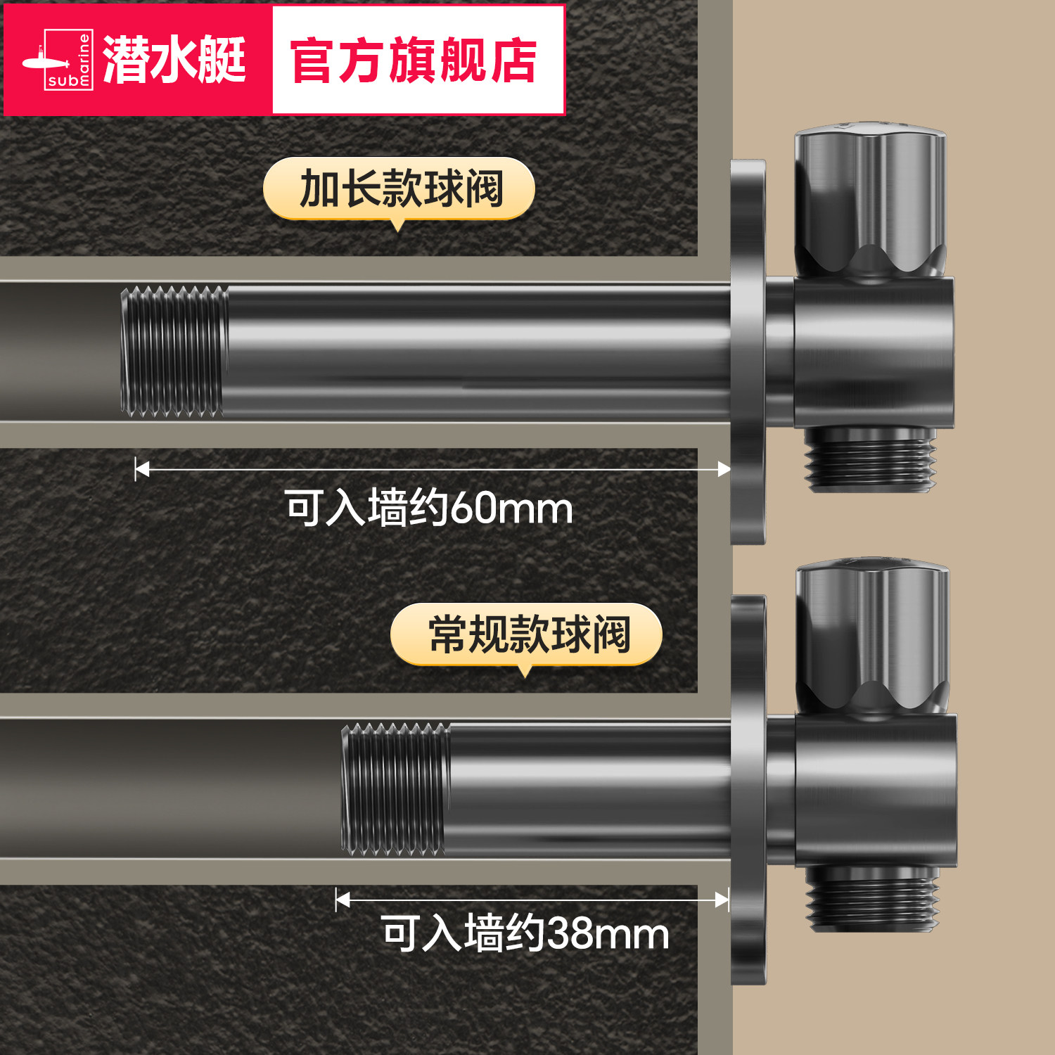 💥种草!潜水艇加长球阀大流量角阀全铜冷热水家用燃气热水器专用开关💎